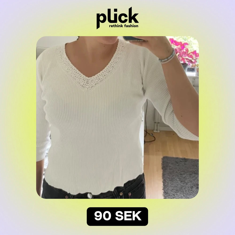 Säljer en superfin vit ribbad tröja från Ralph Lauren. Den har en v-ringad spetsdetalj och trekvartslånga armar. Tröjan är i storlek S och är gjord av 100% bomull, vilket gör den väldigt bekväm!