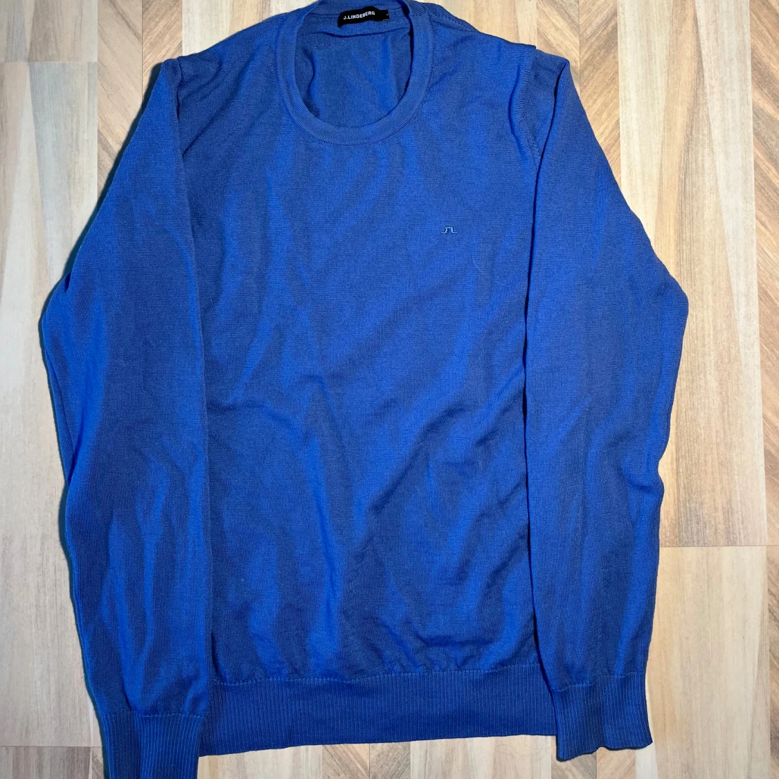 Storleken är L men har krymt till kanske xs/s passar nog perfekt på någon runt 170cm. 100% Merinoull och har ett väldigt skönt material. Tröjan är ljusblå men ser ut att va Mörkblå. Kom med prisförslag!