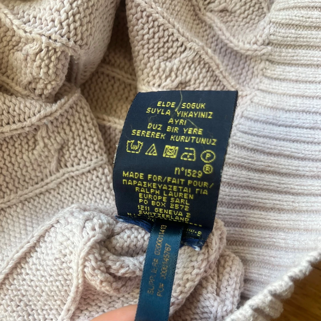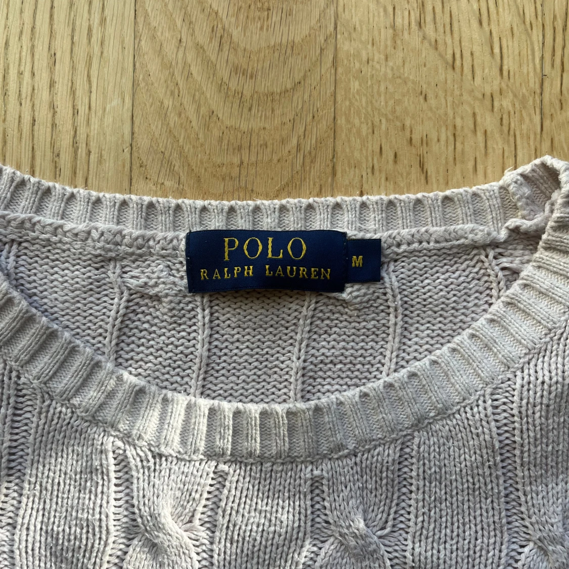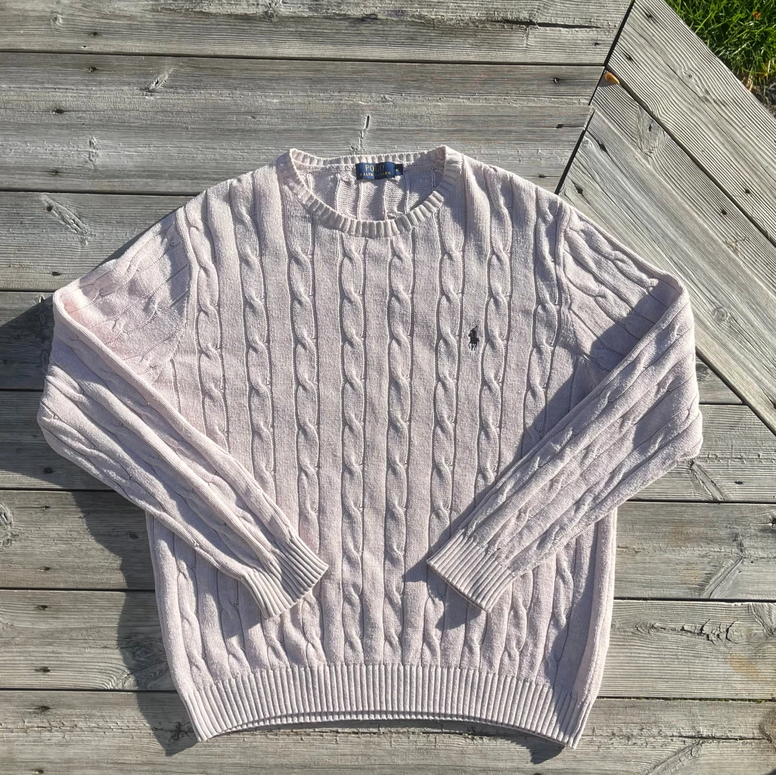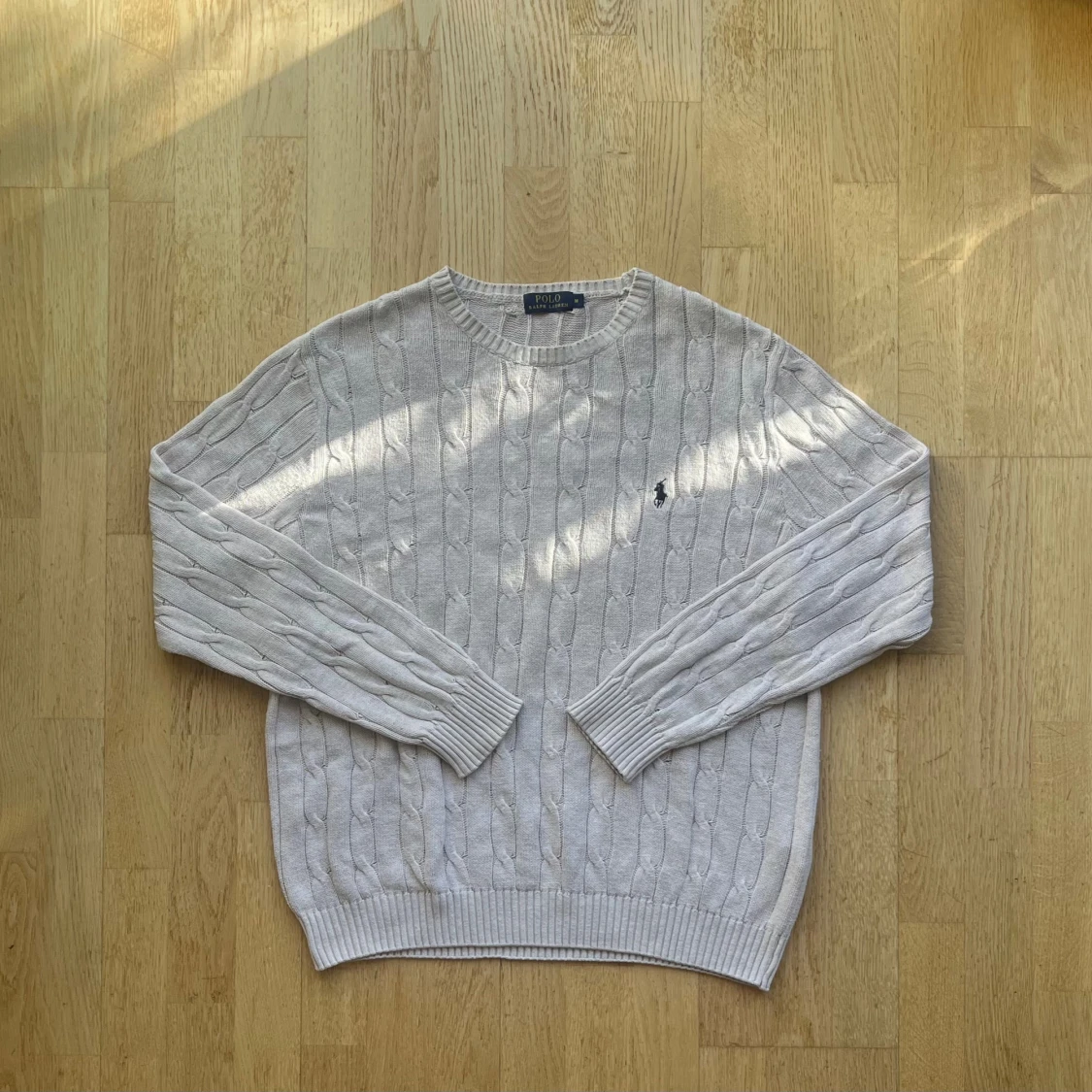 Klassisk kabelstickad tröja från Ralph Lauren i beigefärgton. Tröjan är nästan som ny ‼️ Har fått en svag rosa nyans efter tvätt, med det syns mest i visst ljus Försökte visa rosa nyansen i sista bild Men i övrigt mycket fint skick ‼️ Mjuk och bekväm perfekt för en preppy och tidlös look Mått: Längd - 69 Axelbredd - 50cm