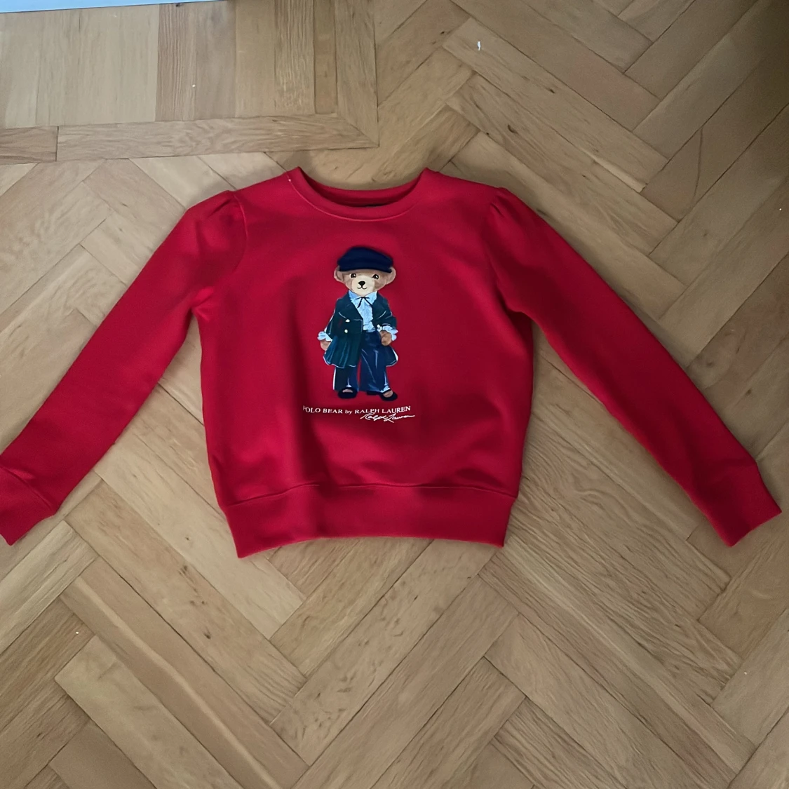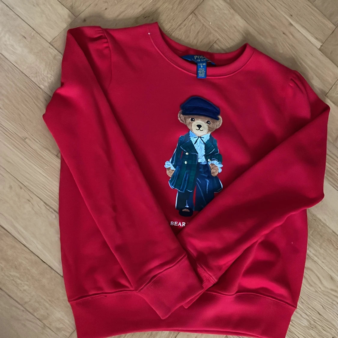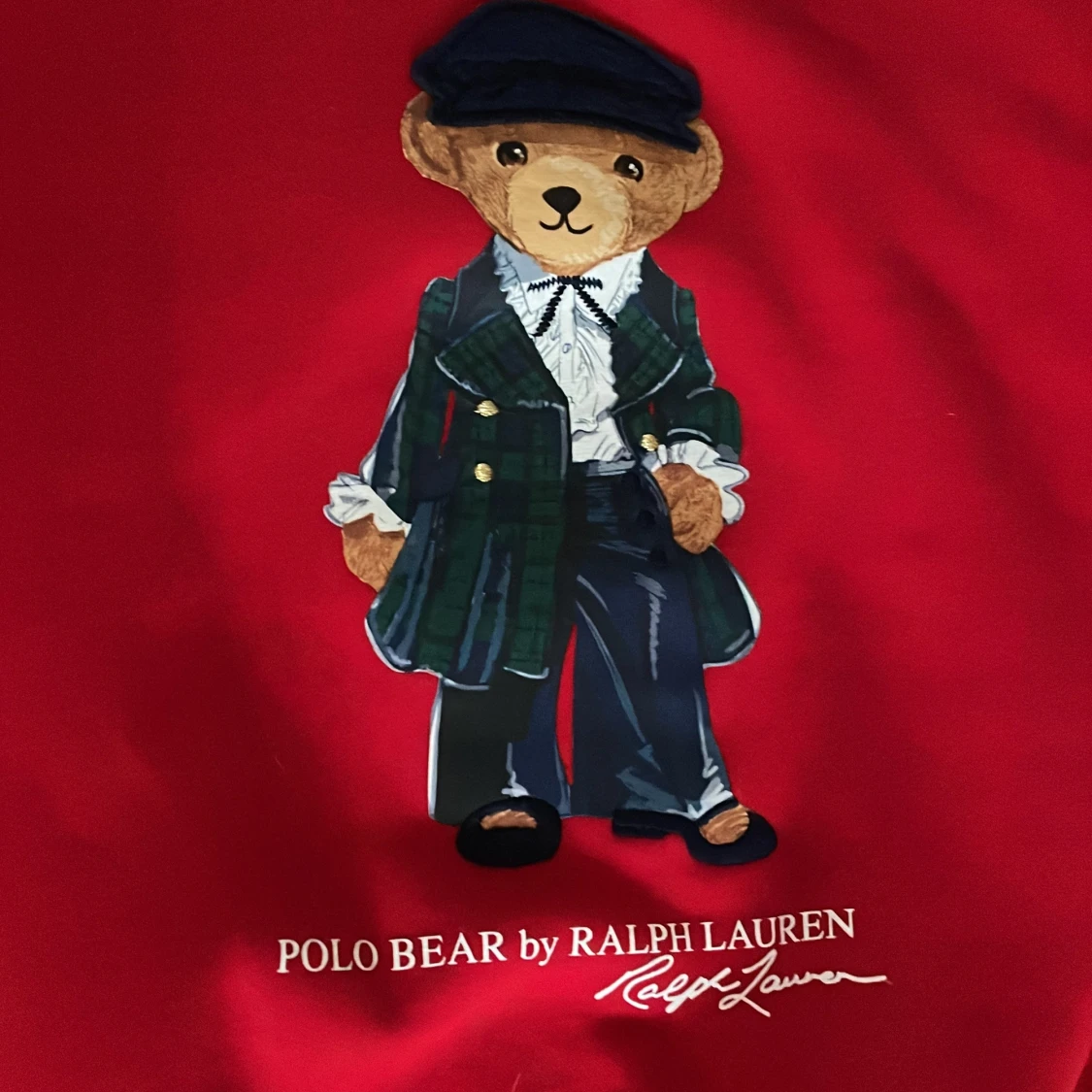 Superfin röd tröja från Ralph Lauren med Polo Bear-tryck på bröstet. Klassisk rund halsringning och långa ärmar med lätt puff vid axlarna. Mjuk insida och ribbade muddar. Perfekt för dig som gillar statement-plagg med ikonisk design.❤️ ALDRIG använd❤️