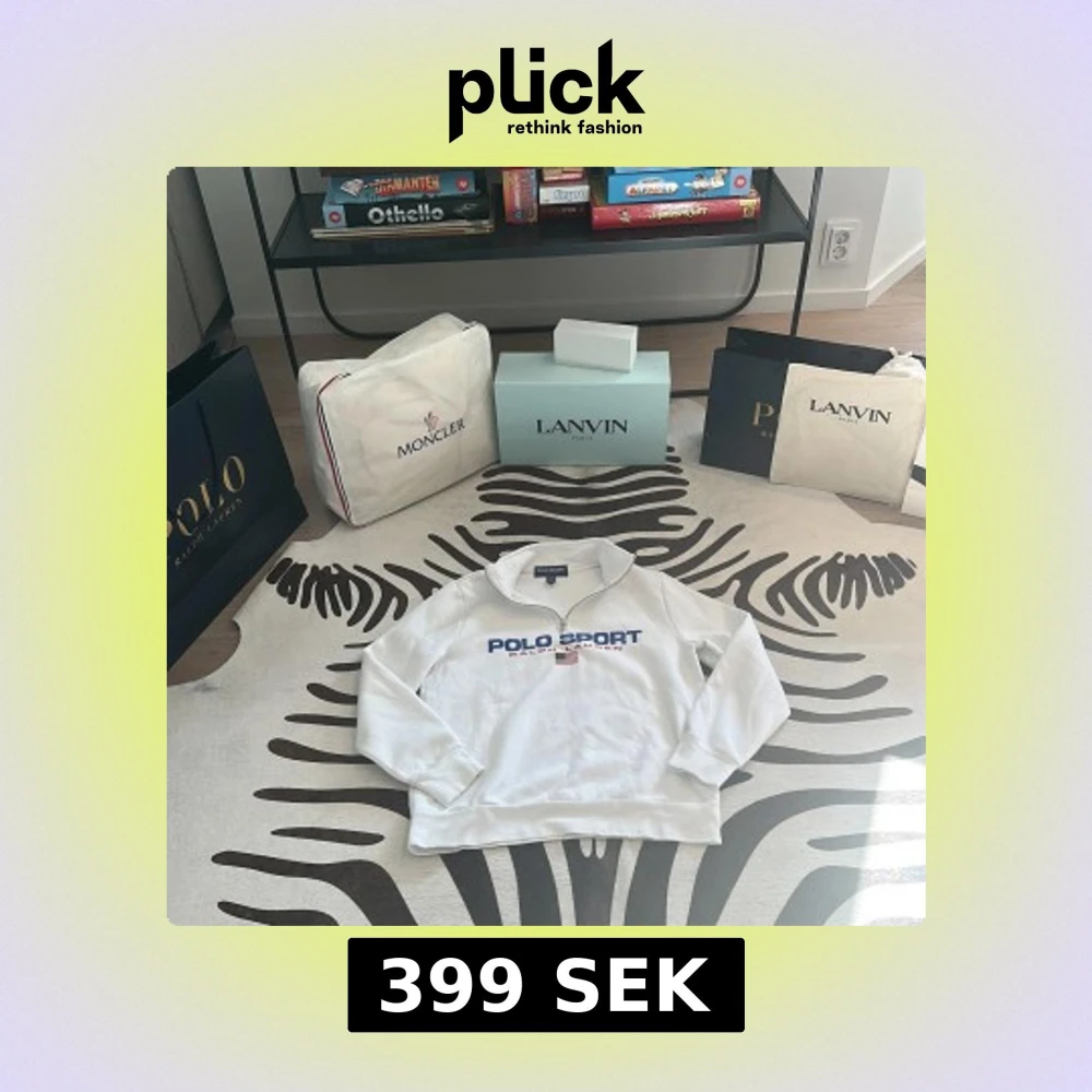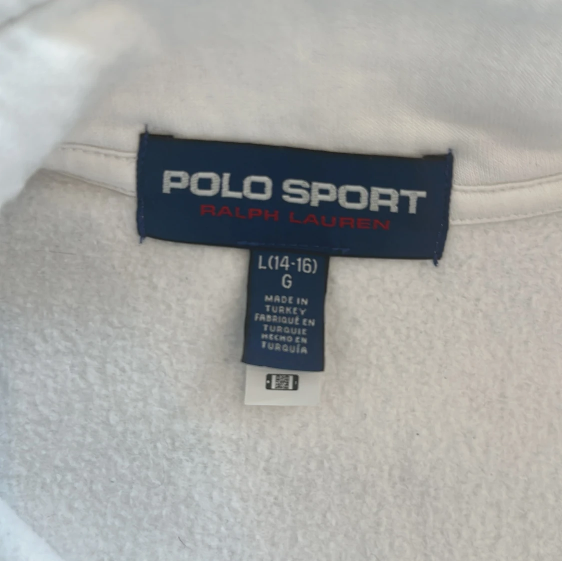 Vit långärmad tröja från Polo Sport Ralph Lauren med blå och röd logga framtill och amerikansk flagga. Tröjan har en klassisk half zip-krage och är tillverkad i mjuk bomull, perfekt för en sportig och clean look.