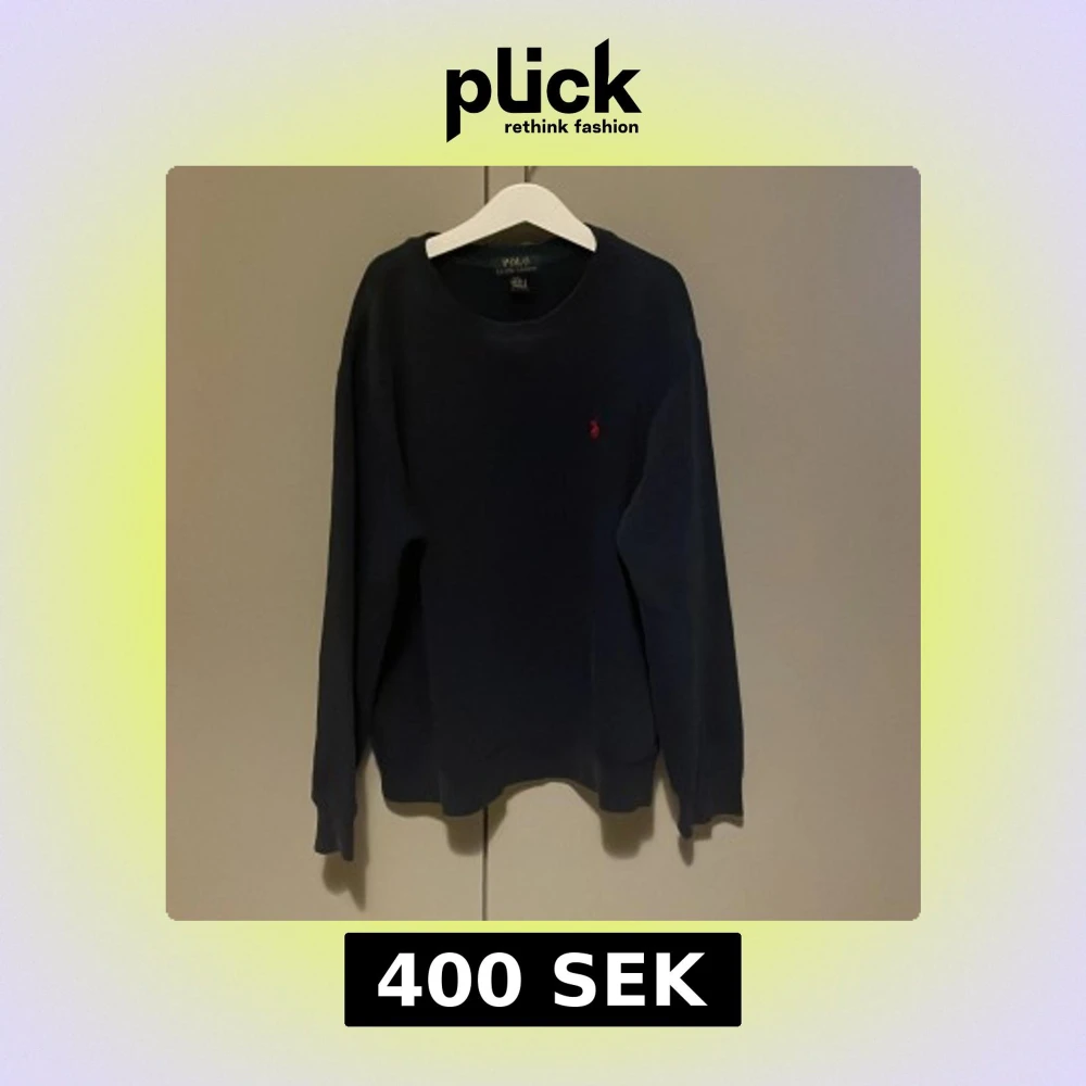 En stilren mörkblå tröja från Polo Ralph Lauren med klassisk rund hals och röd broderad logga på bröstet. Tröjan har långa ärmar och är tillverkad i mjuk bomull, perfekt för lager-på-lager under kyliga dagar | priset kan alltid diskuteras!