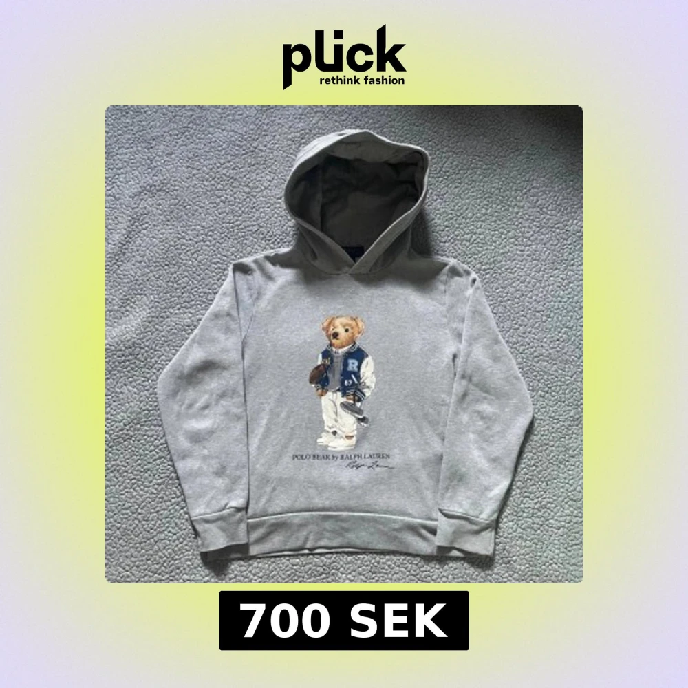 Säljer en grå hoodie från Polo Ralph Lauren med ikoniska Polo Bear trycket👕 väldigt bra skick✅ skickar snabbt efter att du har beställt📦