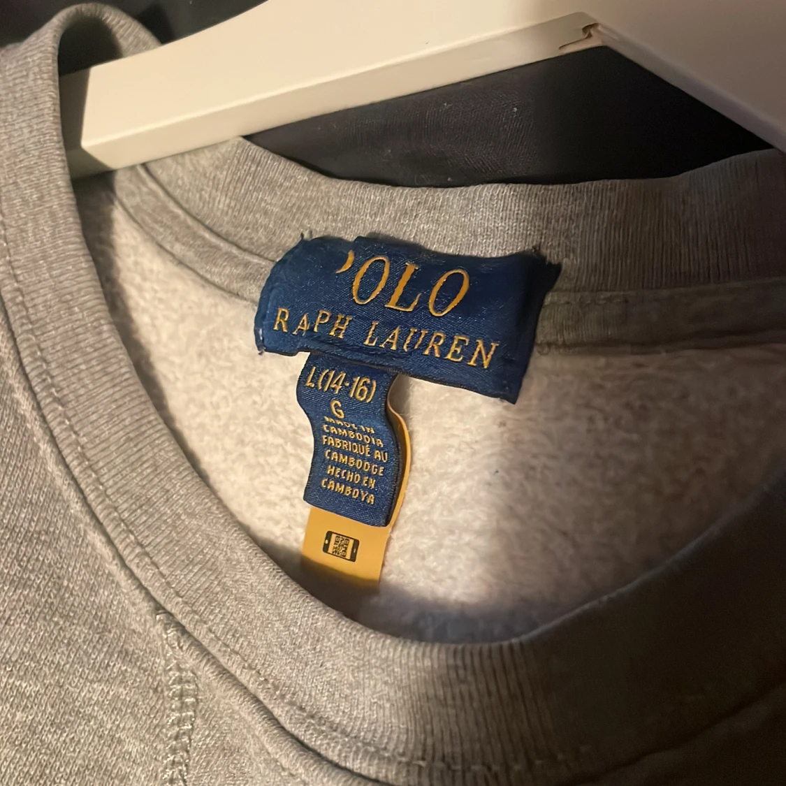 Klassisk grå sweatshirt från Polo Ralph Lauren med rund halsringning och broderad marinblå logga på bröstet. Tröjan har ribbade muddar vid ärmslut och nederkant, perfekt för en chill och stilren look | priset kan alltid diskuteras!