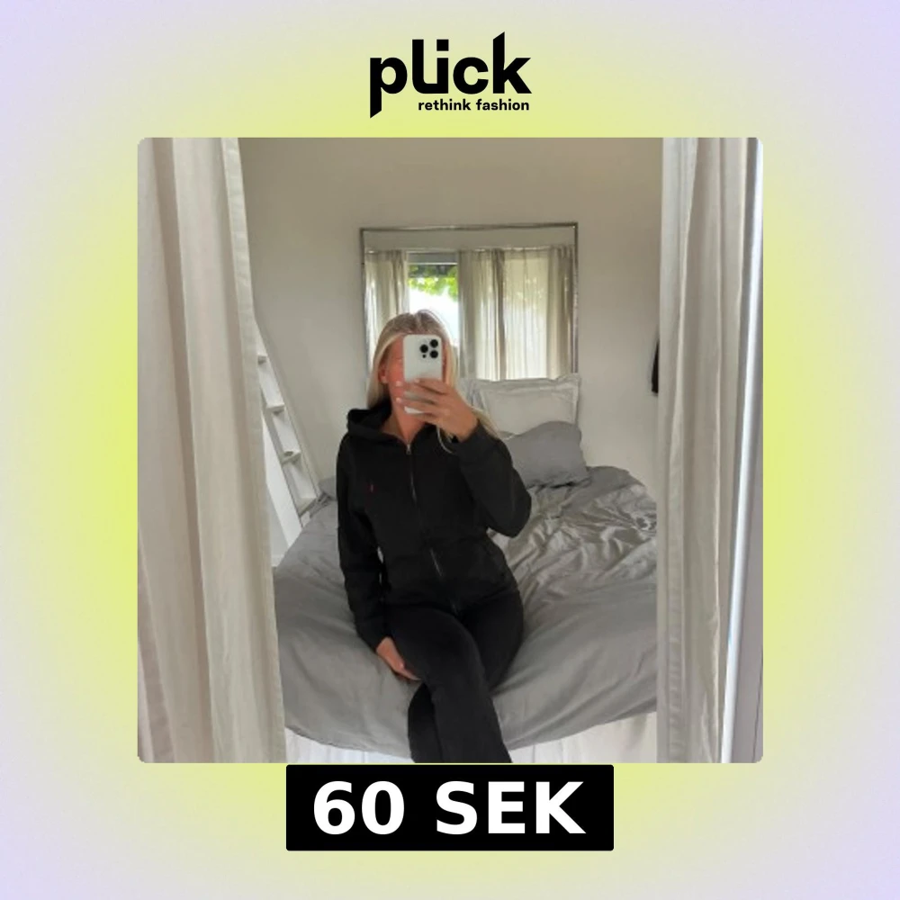 Svart hoodie från Polo Ralph Lauren med dragkedja och huva. Klassisk röd logga broderad på bröstet och två fickor framtill. Mjuk bomullskänsla och relaxed passform, perfekt för chill dagar. Snygg och enkel att matcha med allt.