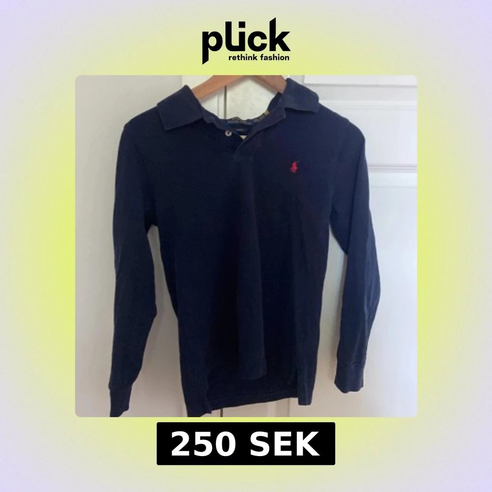 Snygg marinblå långärmad pikétröja från Polo Ralph Lauren med röd broderad logga på bröstet. Slim fit-modell med klassisk krage och knappar vid halsen. Tillverkad i mjuk bomull som är skön mot huden. Perfekt för dig som gillar stilrena och tidlösa plagg.