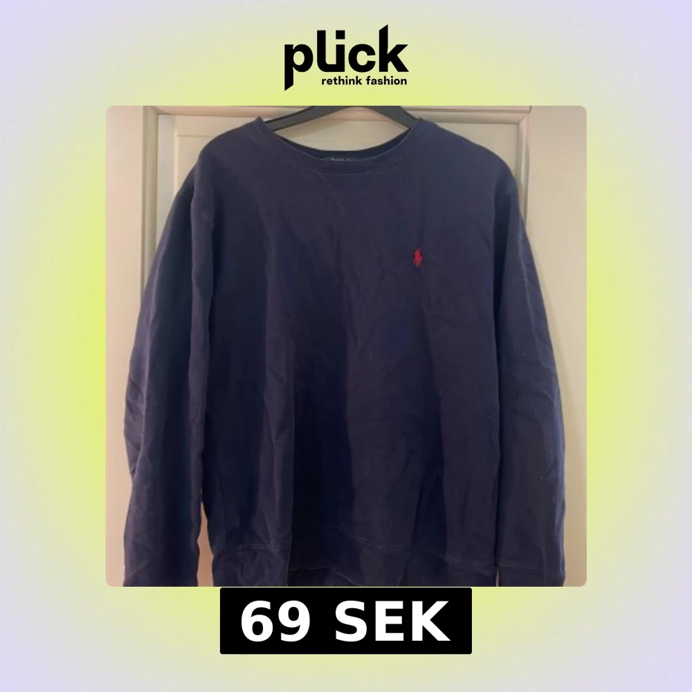 Säljer en klassisk marinblå sweatshirt från Polo Ralph Lauren med röd broderad logga på bröstet. Tröjan har rund hals, långa ärmar och är gjord i mjuk bomull. Perfekt för chill dagar och enkel att matcha. Bra skick i överlag men har en defekt på baksidan - se andra bilden! Inget som syns i helheten av tröjan🤗
