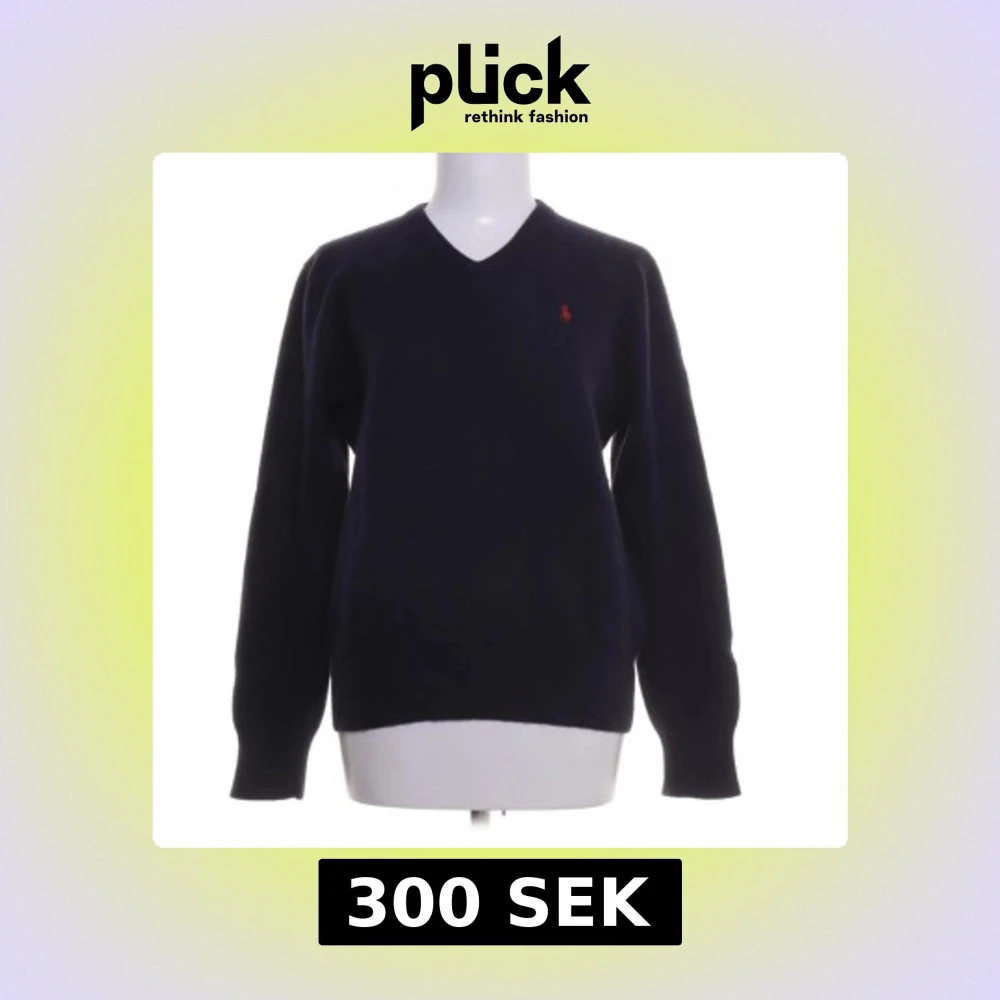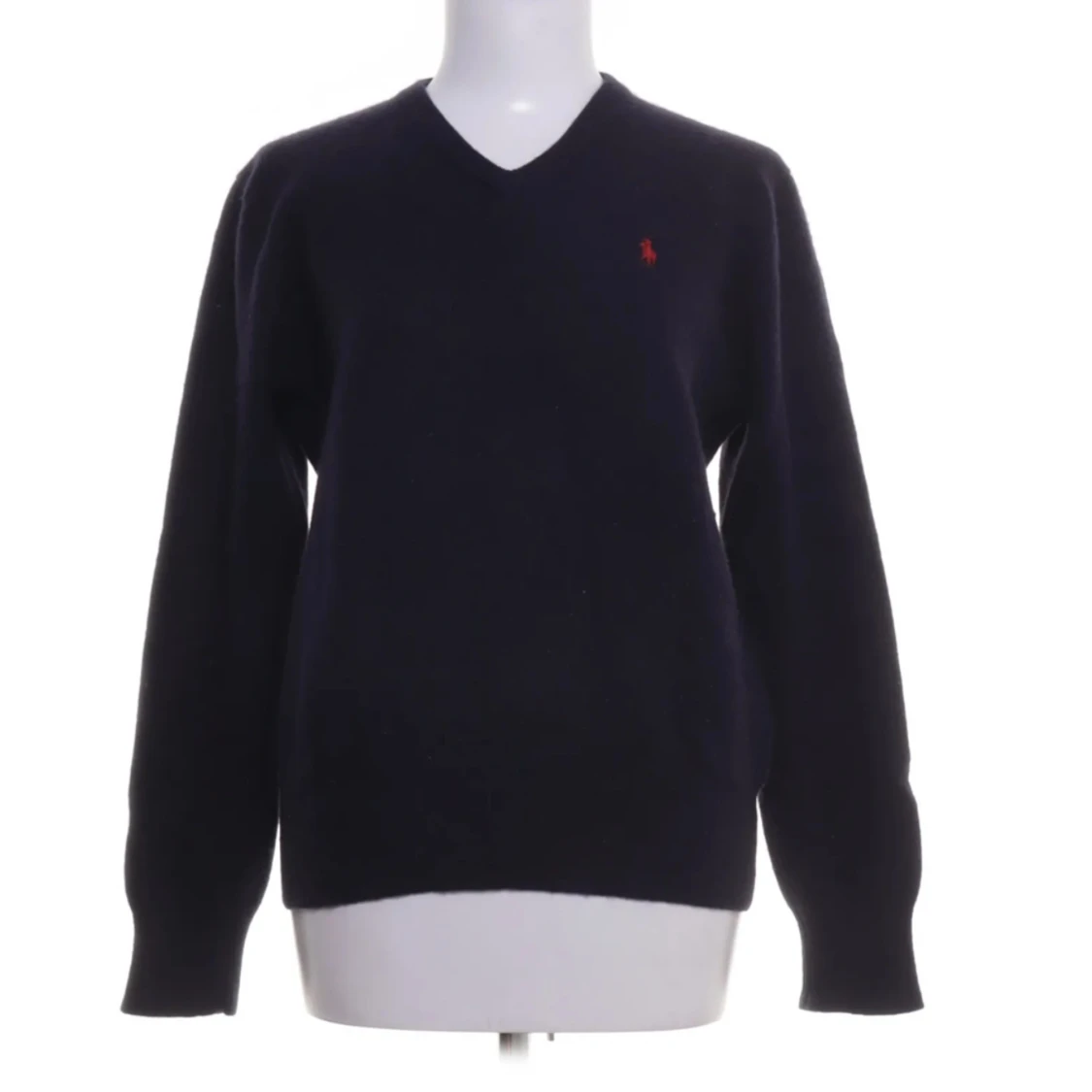 Klassisk mörkblå v-ringad tröja från Polo Ralph Lauren med röd broderad logga på bröstet.