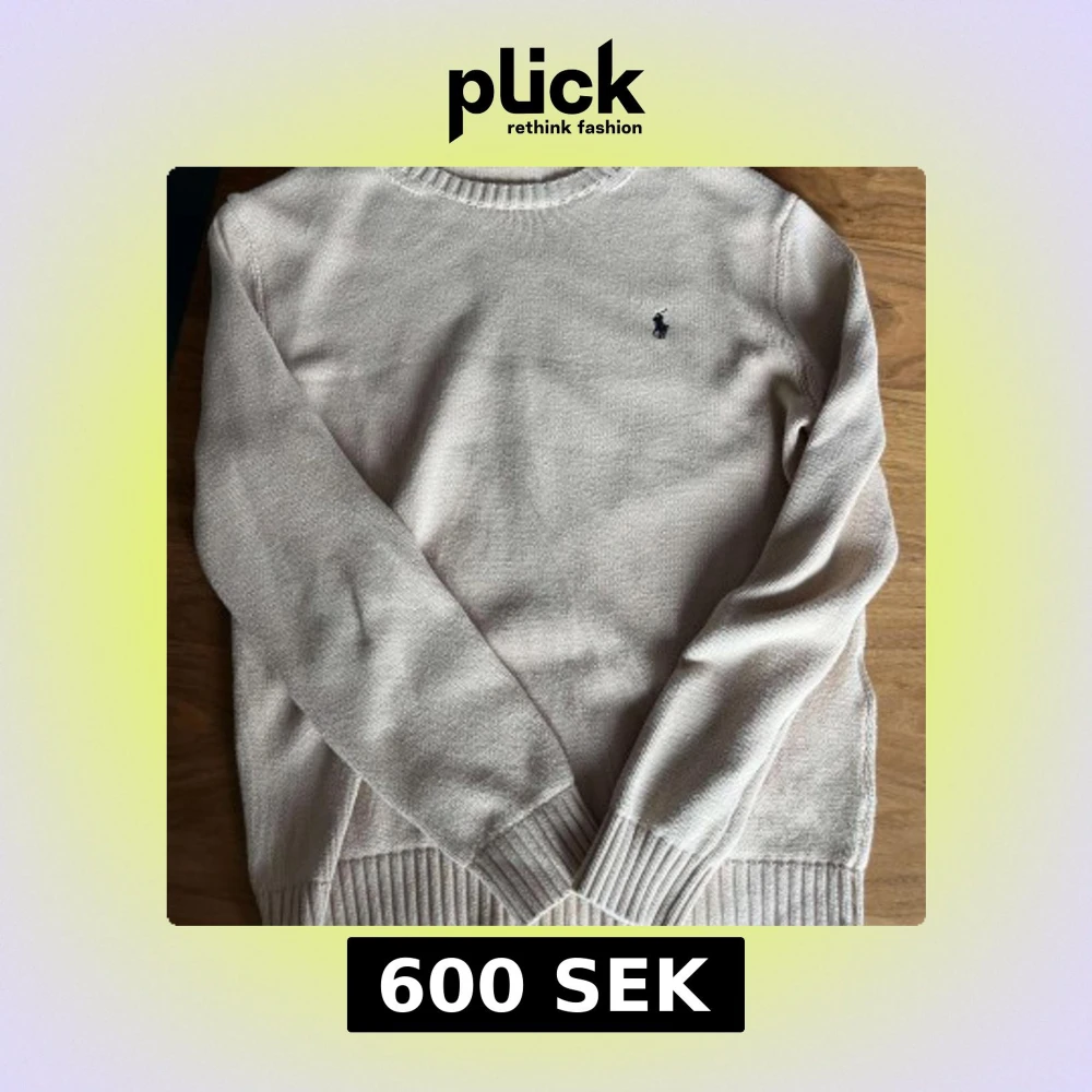 Snygg beige stickad tröja från Polo Ralph Lauren. Storlek L men passar M. Använd en gång