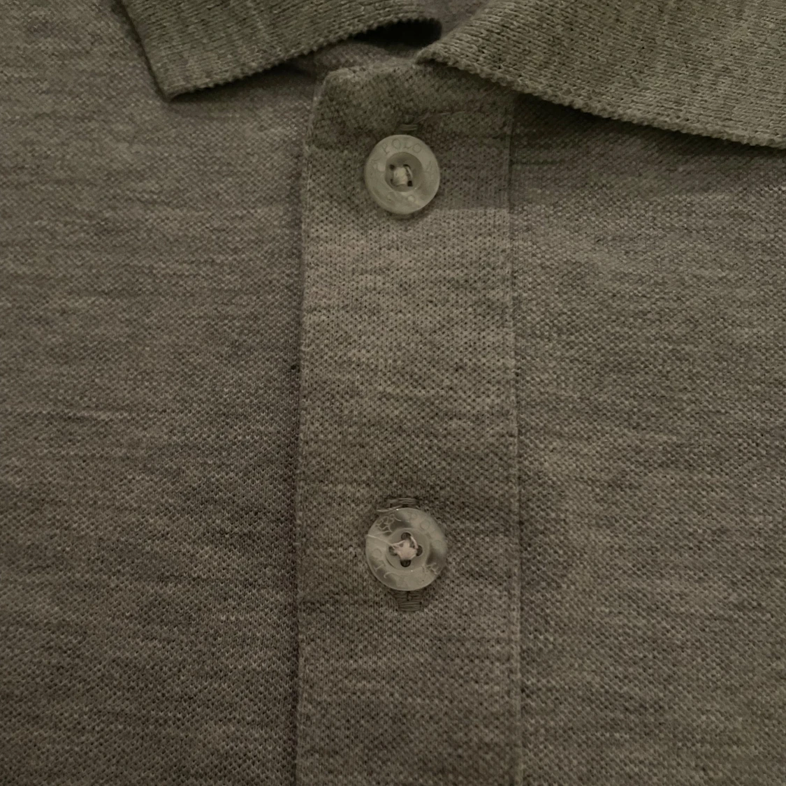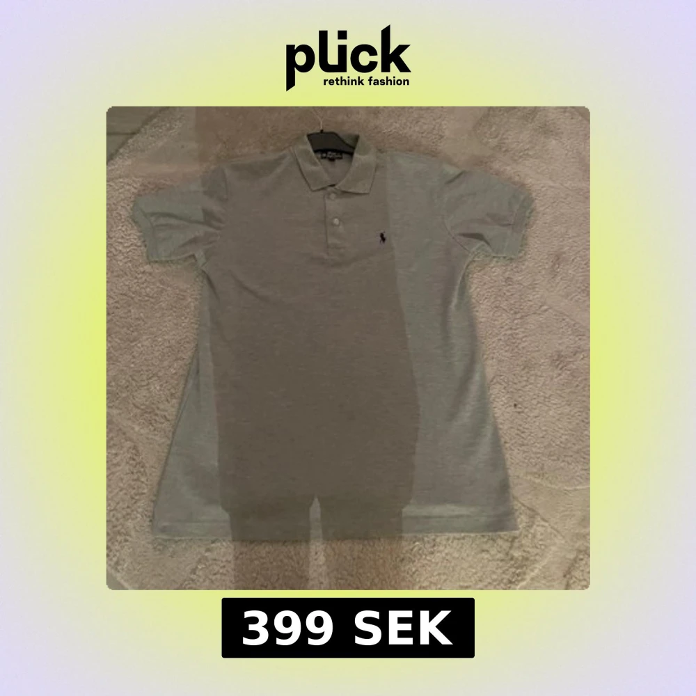 Säljer en stilren grå pikétröja från Polo Ralph Lauren. Tröjan har korta ärmar och en klassisk krage med två knappar. Den ikoniska loggan är broderad på bröstet. Perfekt för en avslappnad men ändå elegant look.