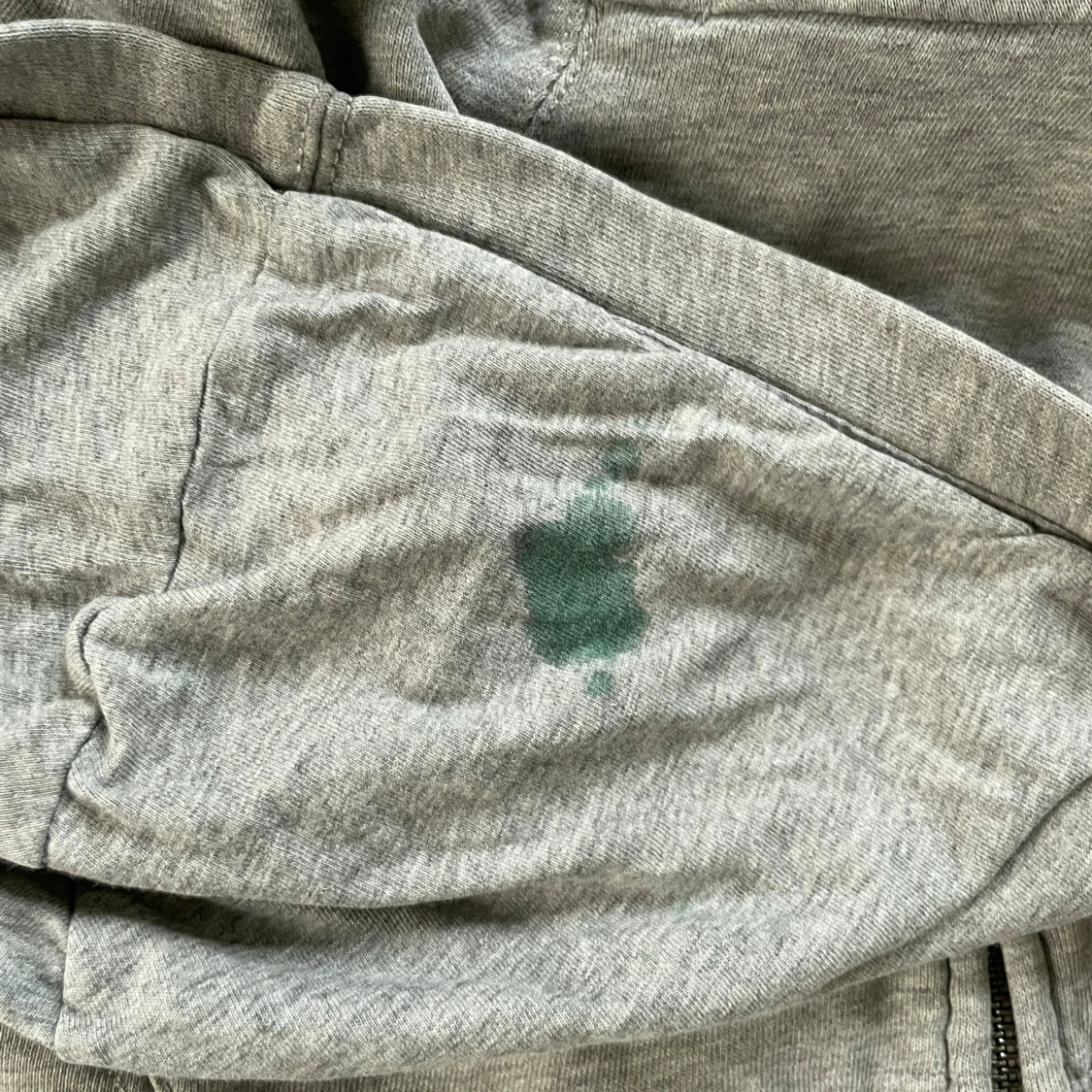 Fin tröja men dragkedjan har gått sönder men går endå att använda. Finns några små defekter men som man inte ser. Finns en fläck i luvan men tror den går bort i tvätten har inte testat. Skriv för fler frågor