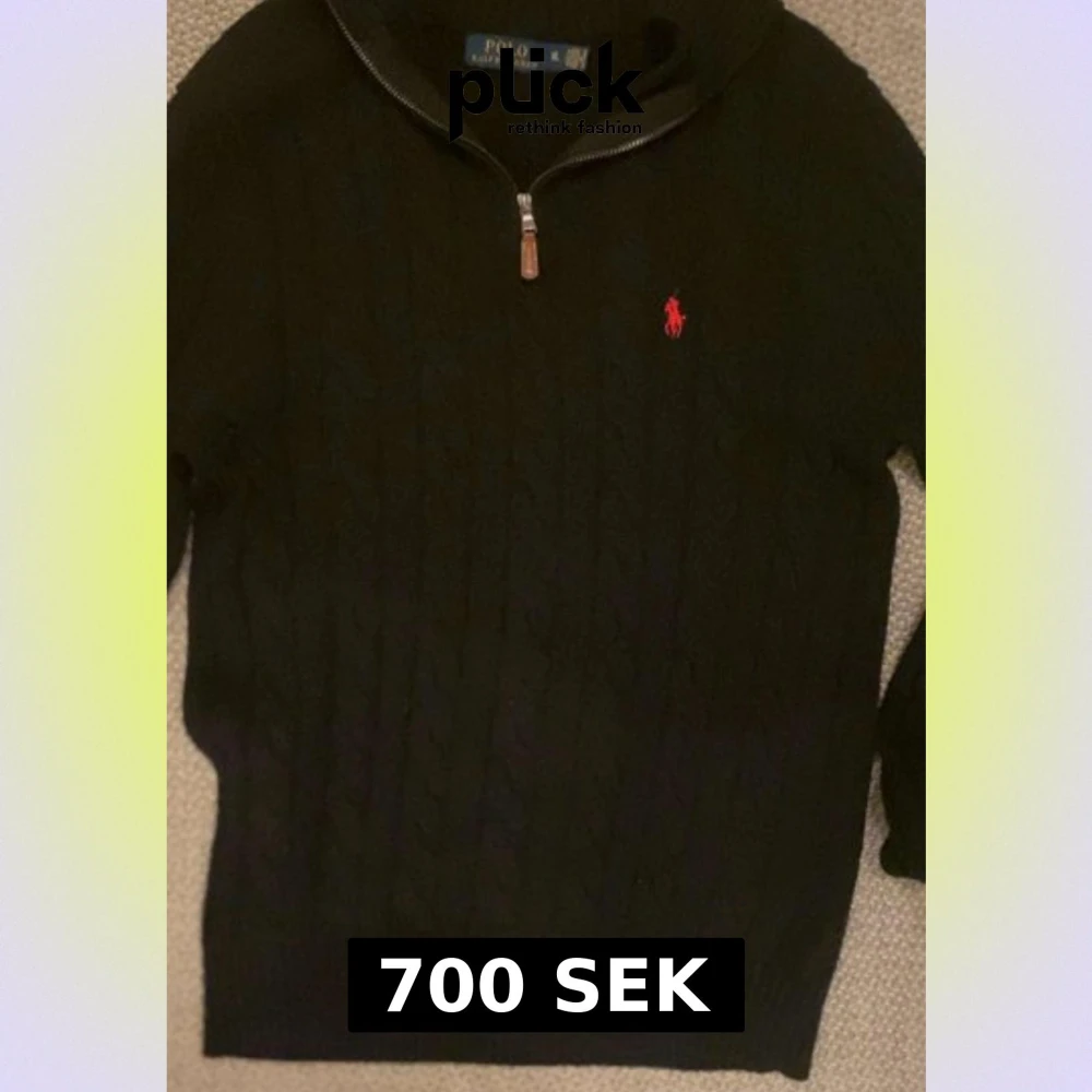 Svart kabelstickad tröja från Polo Ralph Lauren med röd broderad logga på bröstet. Tröjan har lång ärm, ribbade muddar och en snygg half zip-dragkedja vid kragen. Perfekt för dig som gillar klassisk stil med en modern touch.