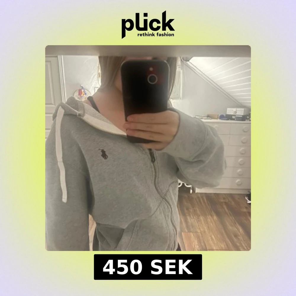 Säljer en grå hoodie från Polo Ralph Lauren med dragkedja och huva med vit snörning. Tröjan har lång ärm, fickor framtill och den klassiska Polo-loggan broderad på bröstet. Använd men inte några skador på tröjan! Säljer eftersom den är för stor🫶