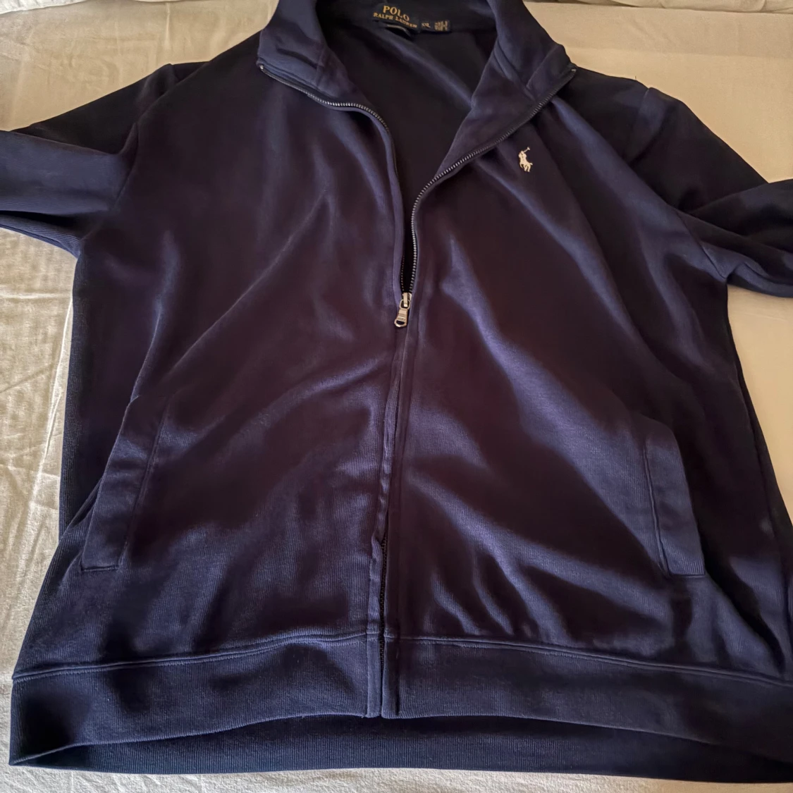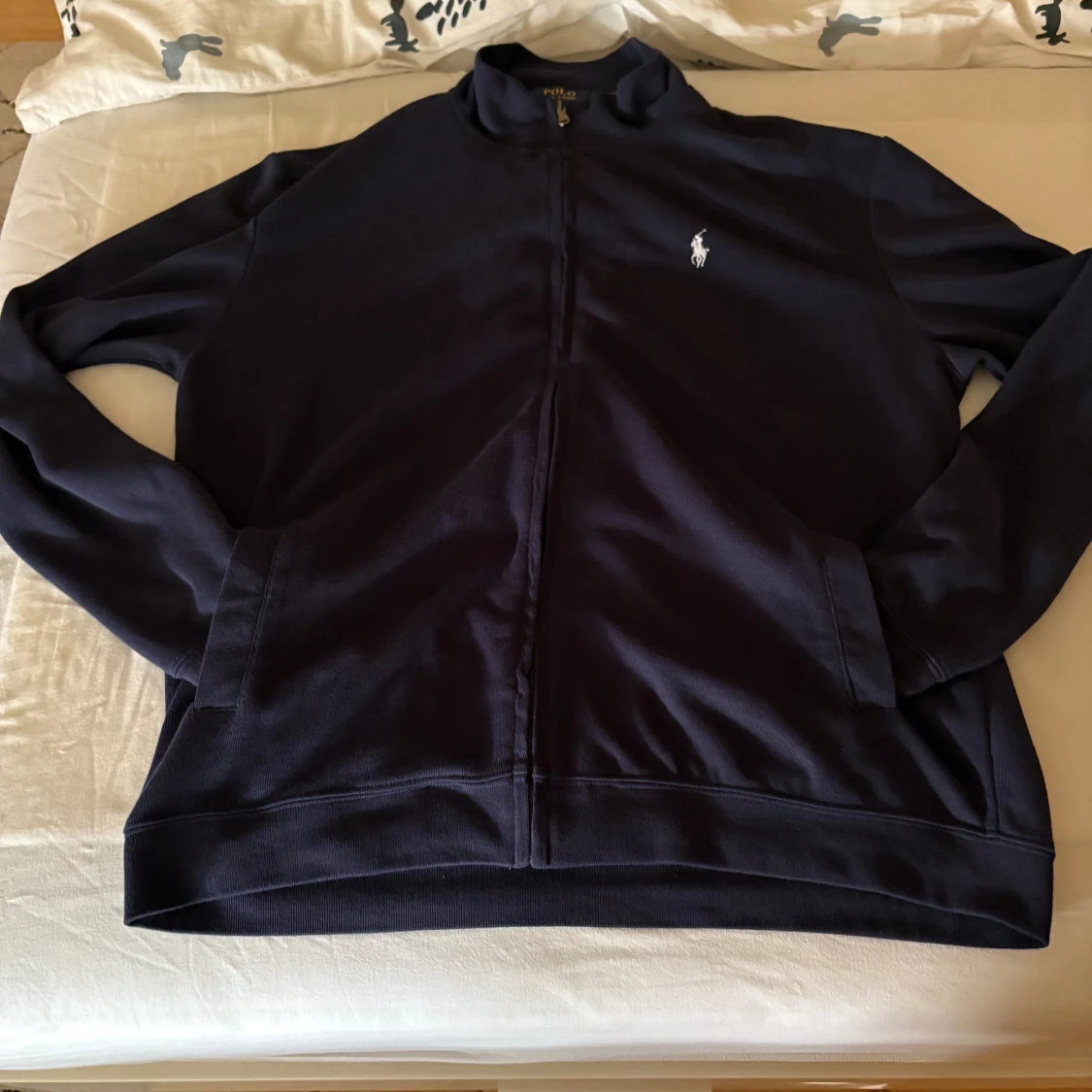 Mörkblå långärmad ziptröja från Polo Ralph Lauren med klassisk vit broderad logga på bröstet. Tröjan har hel dragkedja framtill, två fickor och är tillverkad i mjuk bomull. Perfekt för lager-på-lager och chill vardagsstil.