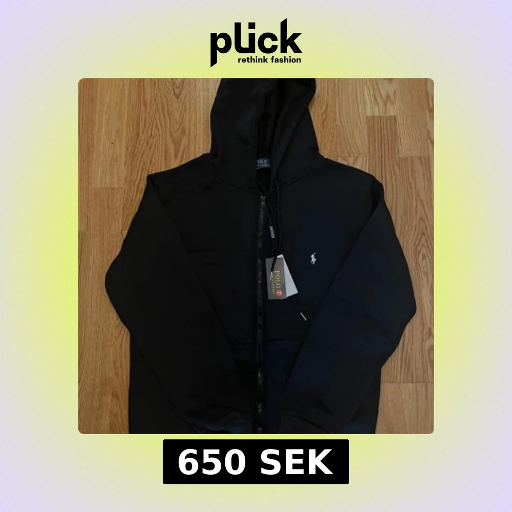 Svart hoodie från Polo Ralph Lauren med dragkedja framtill och klassisk huva. Tröjan har det ikoniska broderade logotypen på bröstet och snörning vid huvan.