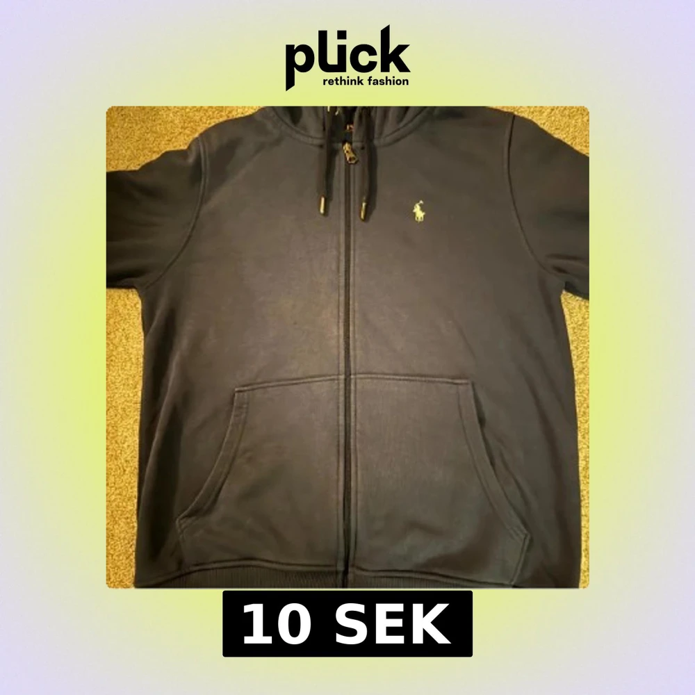Säljer en stilren svart hoodie från Ralph Lauren med dragkedja och det klassiska logotypbroderiet på bröstet. Tröjan har en justerbar huva med snörning och praktiska fickor framtill. Perfekt för en avslappnad look.