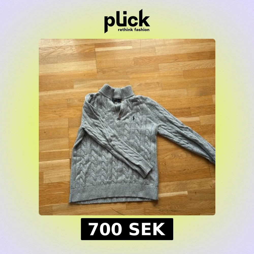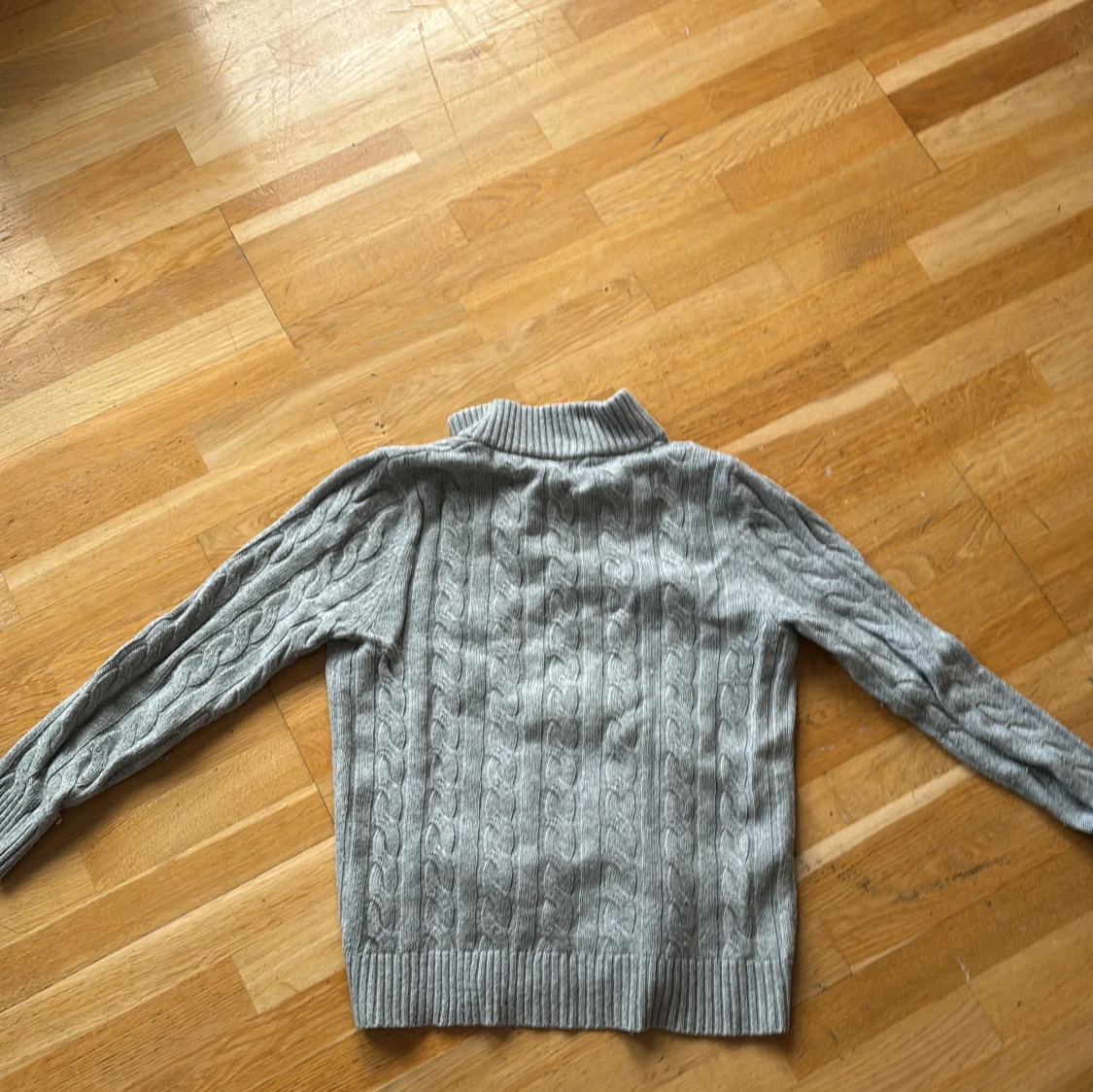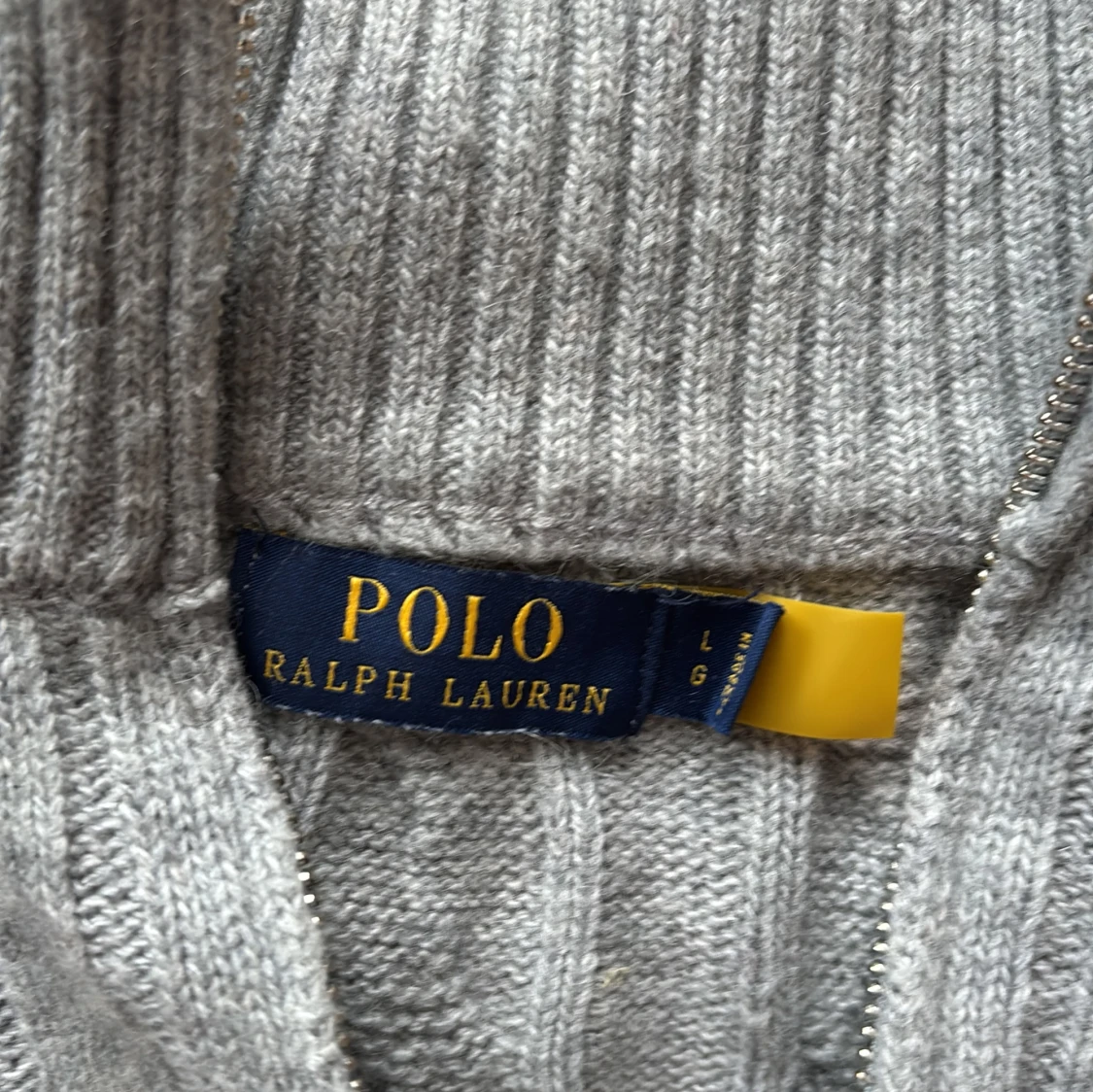 Kabelstickad grå tröja från Polo Ralph Lauren med halv dragkedja och hög krage. Klassisk broderad logga på bröstet och ribbade muddar. Perfekt för lager-på-lager och chill höst- eller vinterstil.
