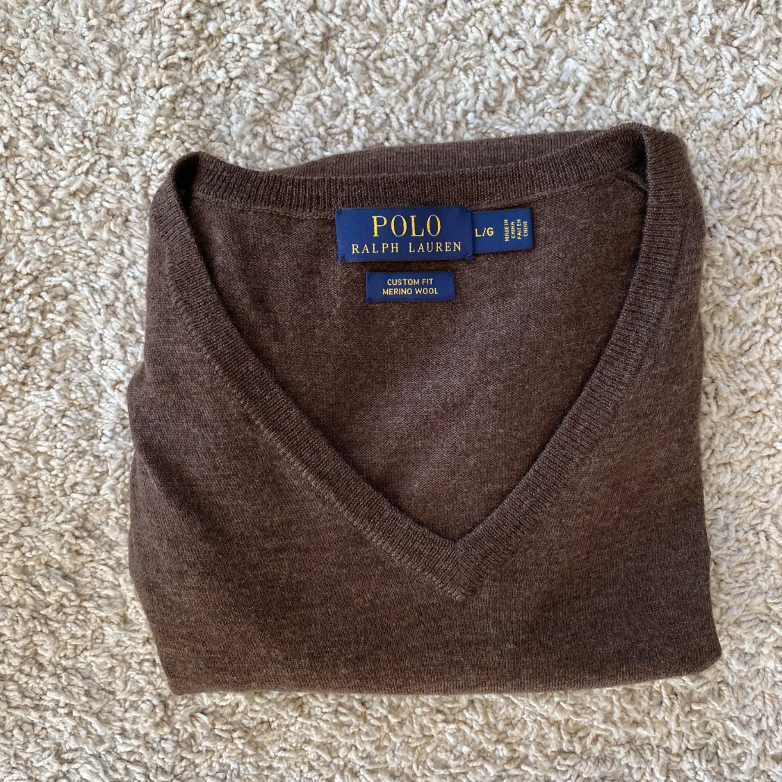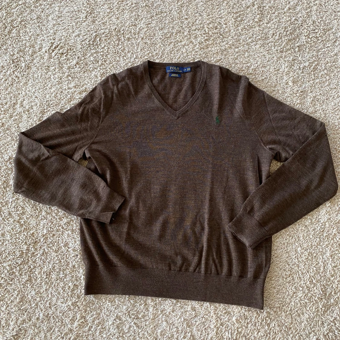 Snygg brun v-ringad tröja från Polo Ralph Lauren i mjuk merinoull. Klassisk modell med långa ärmar och diskret logga på bröstet. Perfekt för en stilren och tidlös look.