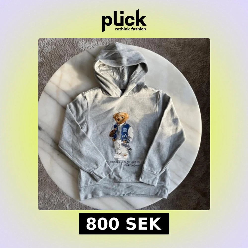 Säljer en grå hoodie från Ralph Lauren med ett coolt björnmotiv på framsidan. Hoodien har långa ärmar och en klassisk huva. Perfekt för en avslappnad stil. 🐻