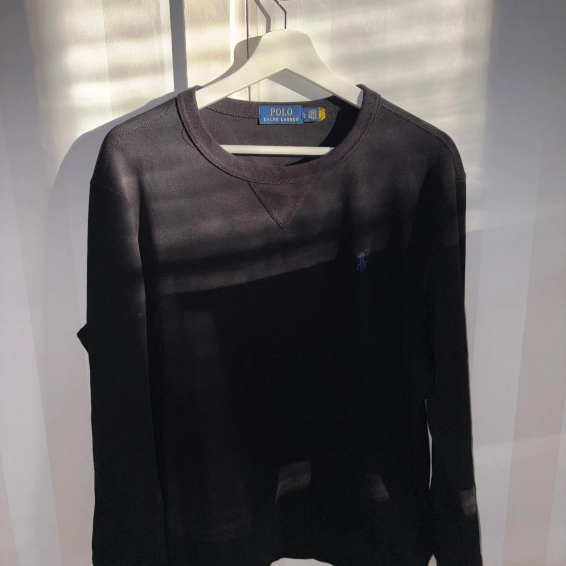Svart långärmad tröja från Polo Ralph Lauren med rund halsringning och diskret blå logga broderad på bröstet. Klassisk och stilren modell som passar perfekt till jeans eller chinos. Sitter som M/L