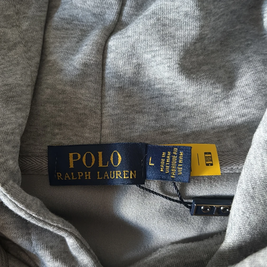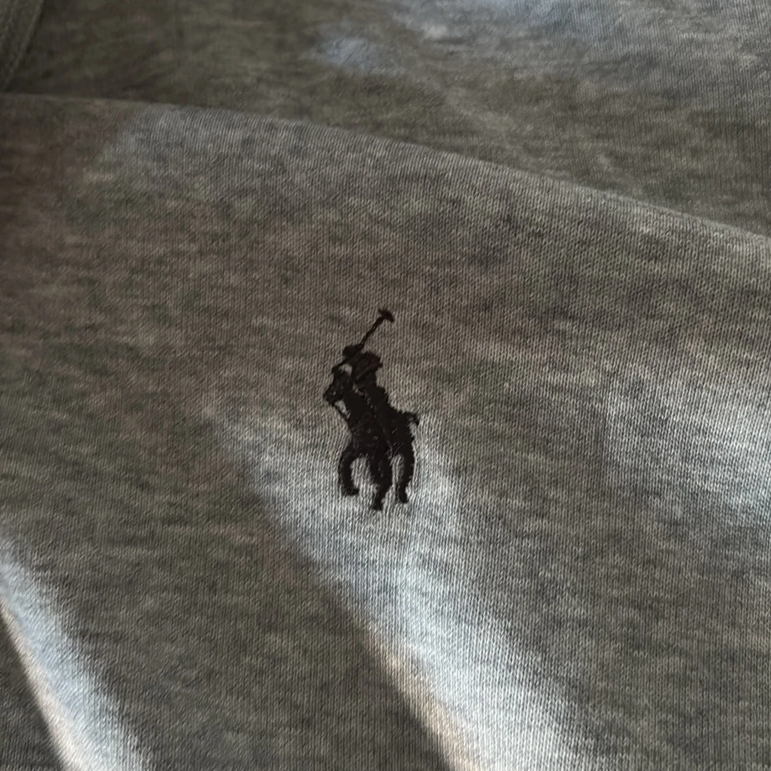 Snygg grå hoodie från Polo Ralph Lauren med klassisk svart logga på bröstet. Tröjan har huva med snörning, stor magficka och ribbade muddar vid ärmslut och nederkant. Mjuk bomullskvalitet som är perfekt för chill dagar. Den är lite liten i storlek så jag skulle rekommendera Medium