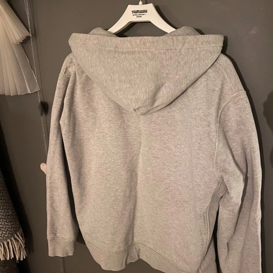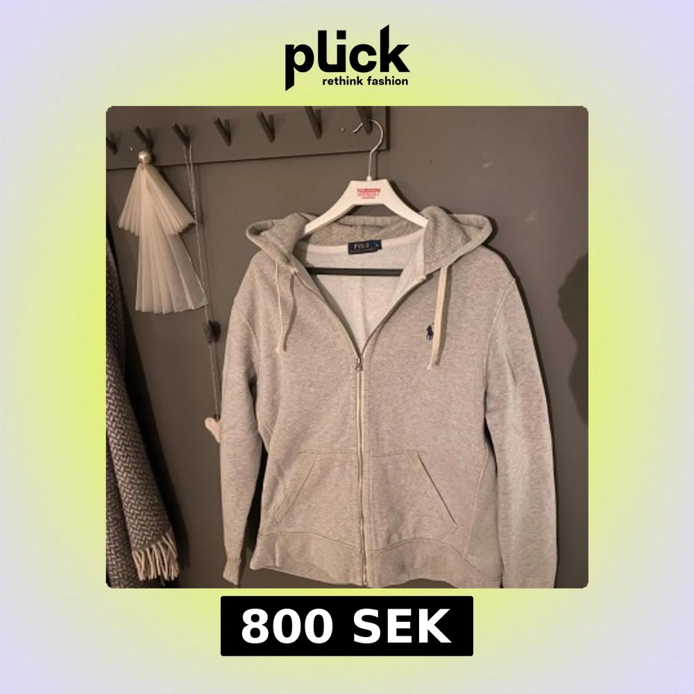 Säljer en klassisk grå hoodie från Polo Ralph Lauren. Den har en dragkedja framtill och en broderad logga på bröstet. Perfekt för en avslappnad stil. Den är lite för stor för M men de kan gå bra.