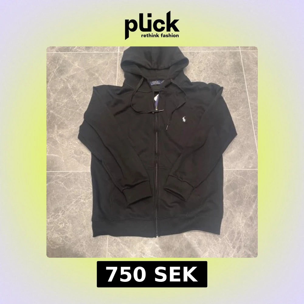 Svart hoodie från Polo Ralph Lauren med dragkedja och huva. Klassisk design med vit broderad logga på bröstet, snörning i huvan och ribbade muddar. Perfekt för chill dagar och enkel att matcha med jeans eller joggers.