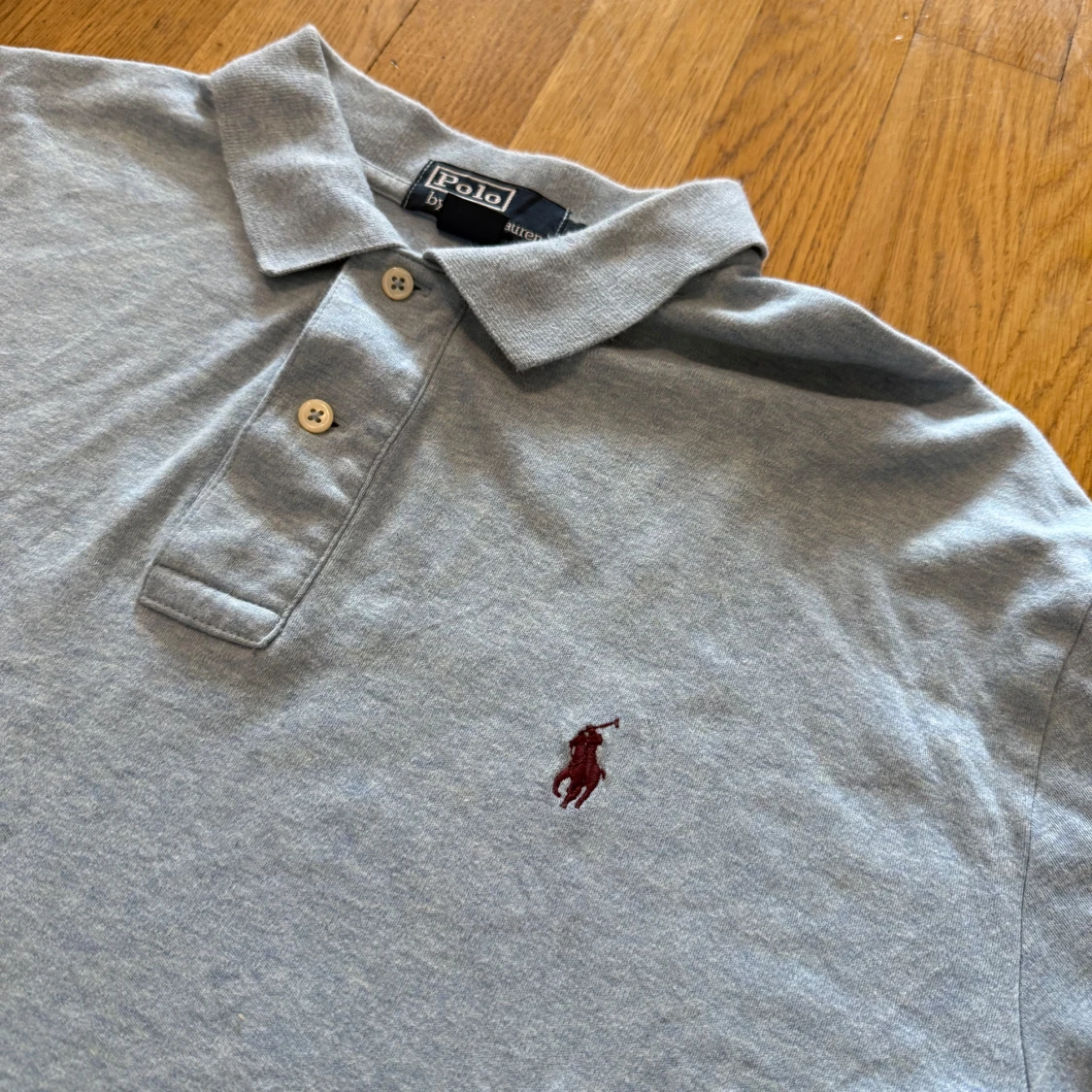 Klassisk grå pikétröja från Ralph Lauren med broderad logga på bröstet. Tröjan har krage, två knappar och korta ärmar. Perfekt för en clean och stilren look. Tillverkad i mjuk bomull som känns skön mot huden.