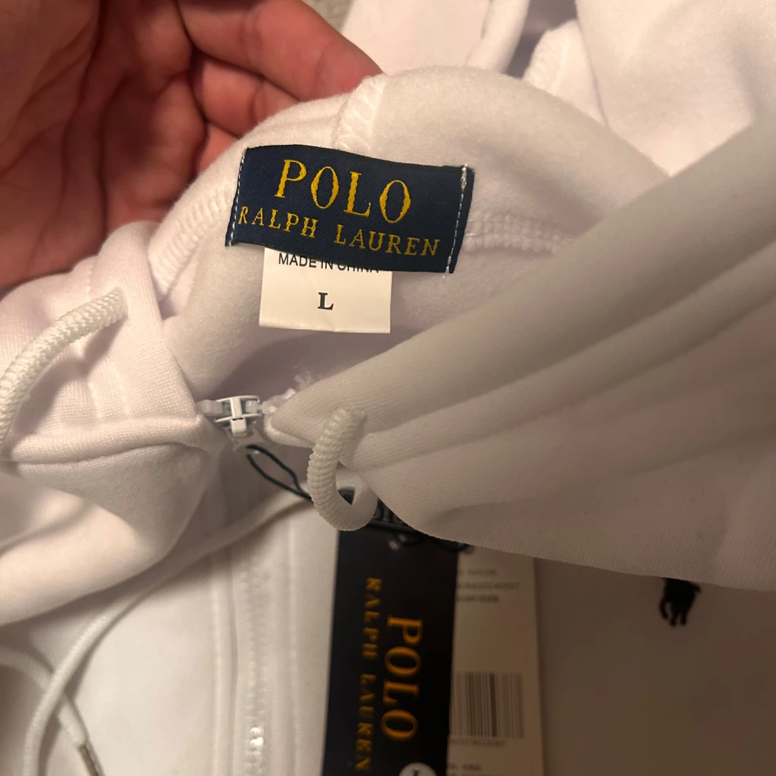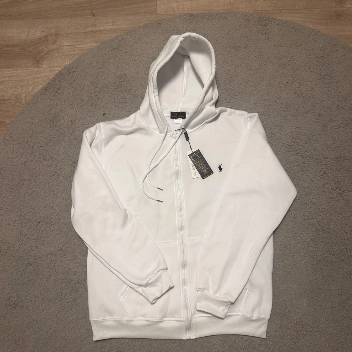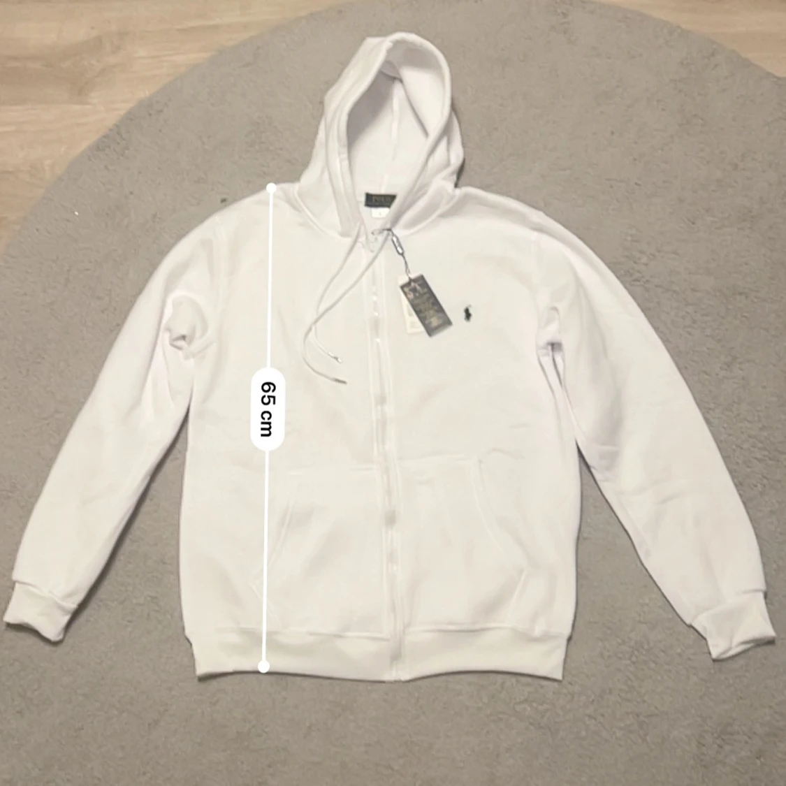 Säljer en clean vit hoodie från Polo Ralph Lauren i storlek L. Tröjan har huva med snörning, dragkedja framtill och en stor ficka på magen. Klassisk Polo-logga broderad på bröstet. Perfekt för chill dagar och enkel att matcha med jeans eller joggers.Höjden är 65 cm och Breden är 50 cm.Den är helt ny med tagg.💬Skriv gärna om du har frågor! 📦 Skickas inom 24 timmar! 📉 Kan gå ner lite i pris vid snabb affär! 🕒 Aktiv nästan hela tiden svarar snabbt!