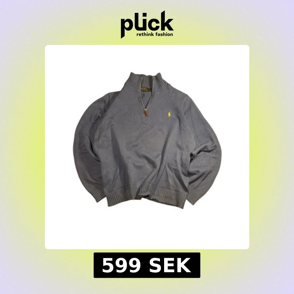 Snygg grå tröja från Polo Ralph Lauren med halv dragkedja och ribbad krage. Den har en gul broderad logotyp på bröstet och ribbade muddar vid ärmslut och nederkant. Perfekt för en stilren look.
