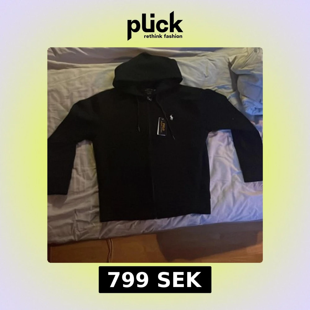 Svart hoodie från Polo Ralph Lauren med klassisk vit broderad logga på bröstet. Tröjan har huva med snörning och dragkedja framtill. Tillverkad i mjuk bomull, perfekt för en chill och stilren look, den är helt ny inte använt den nån gång