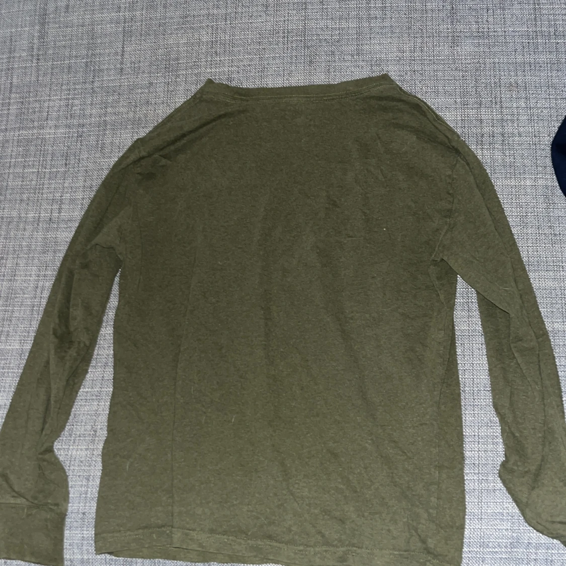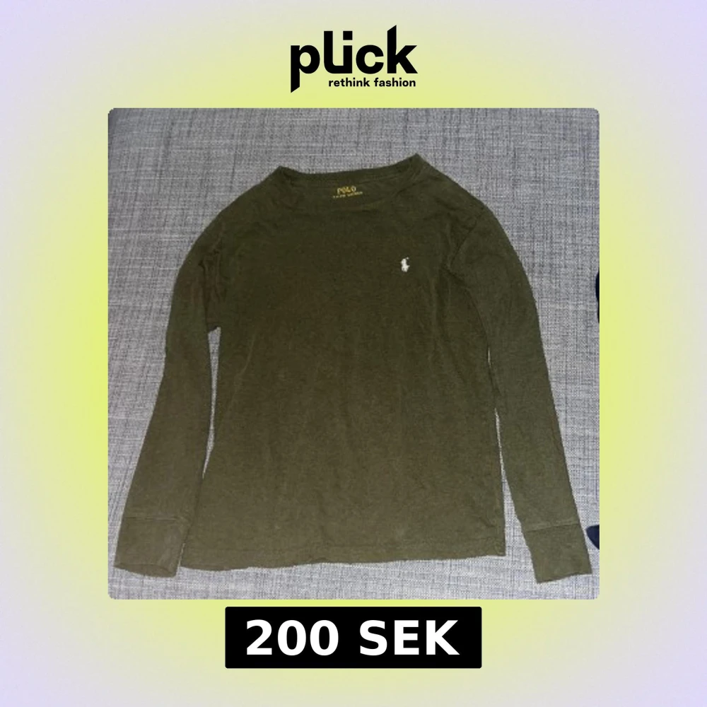 Säljer en olivgrön långärmad tröja från Polo Ralph Lauren med klassisk vit logga broderad på bröstet. Tröjan har en enkel, stilren design och är tillverkad i mjuk bomull. Perfekt för en avslappnad och snygg look.