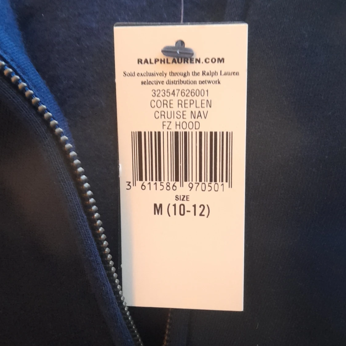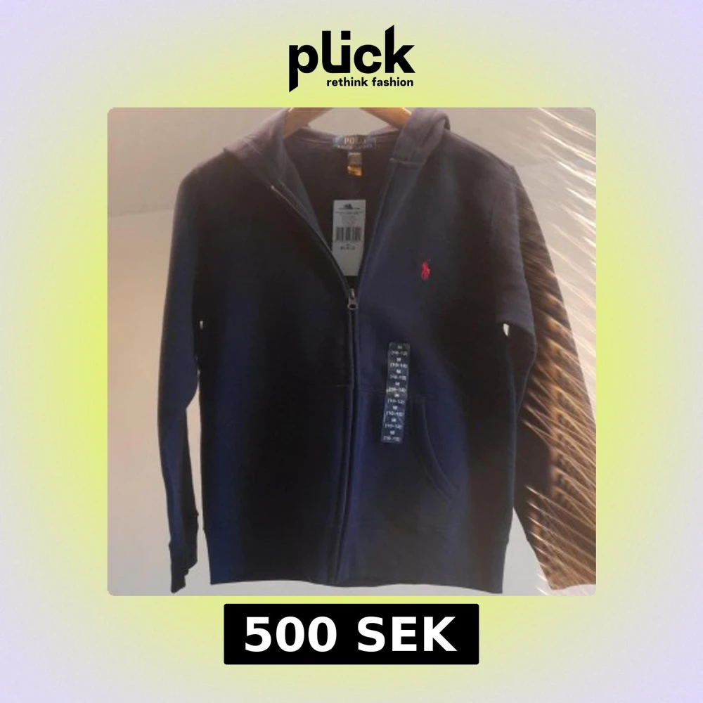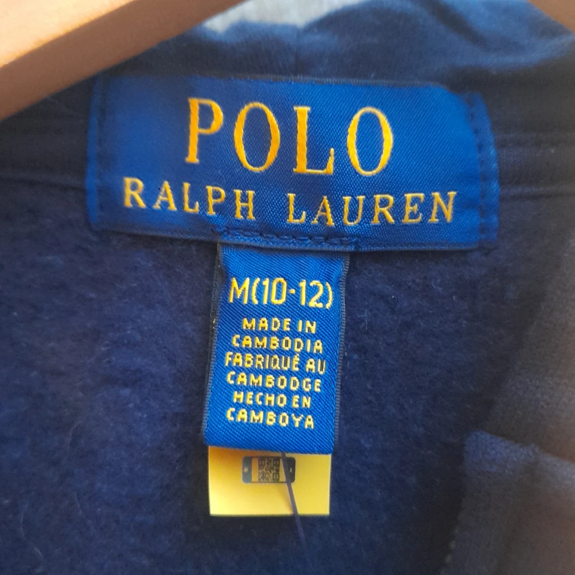 Snygg marinblå hoodie från Polo Ralph Lauren med dragkedja och huva. Klassisk design med röd broderad logga på bröstet och känguruficka framtill. Perfekt för en chill och stilren look.