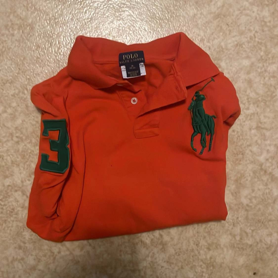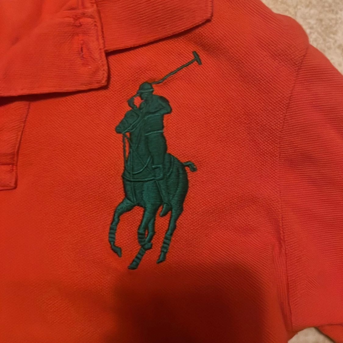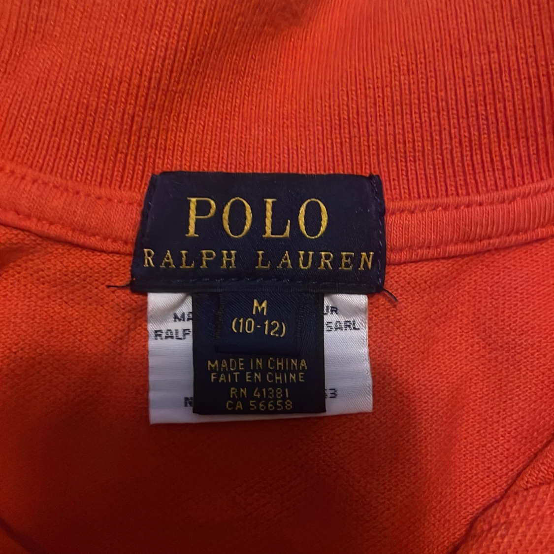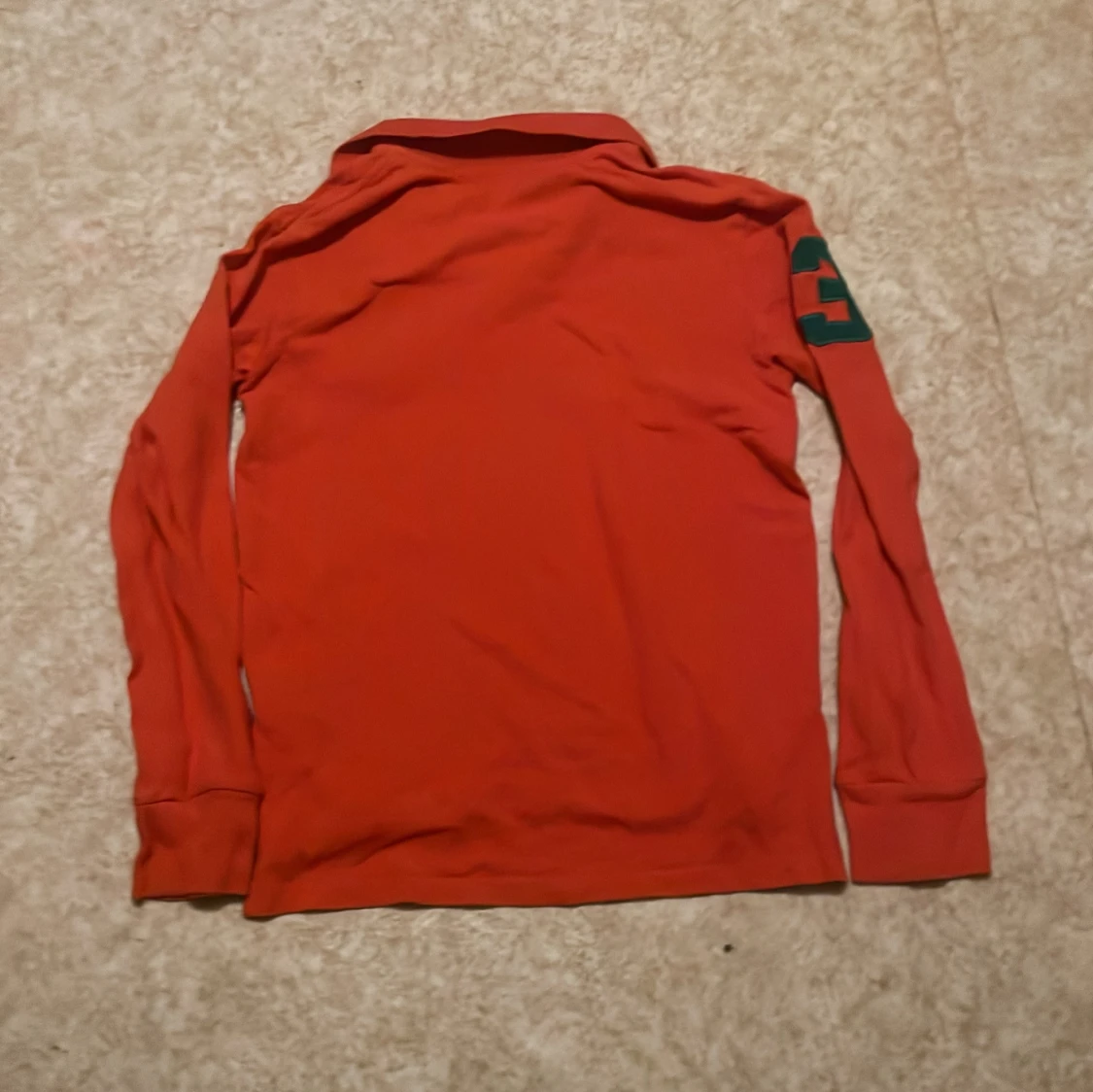 En orange långärmad Polo Ralph Lauren tröja som är i ganska bra skick. Använd några gånger men är fortfarande i bra skick. Skriv till mig om ni har nån fråga eller nått om tröjan tröjan eller om storlek för jag vet inte exakt vad storleken på tröjan är!