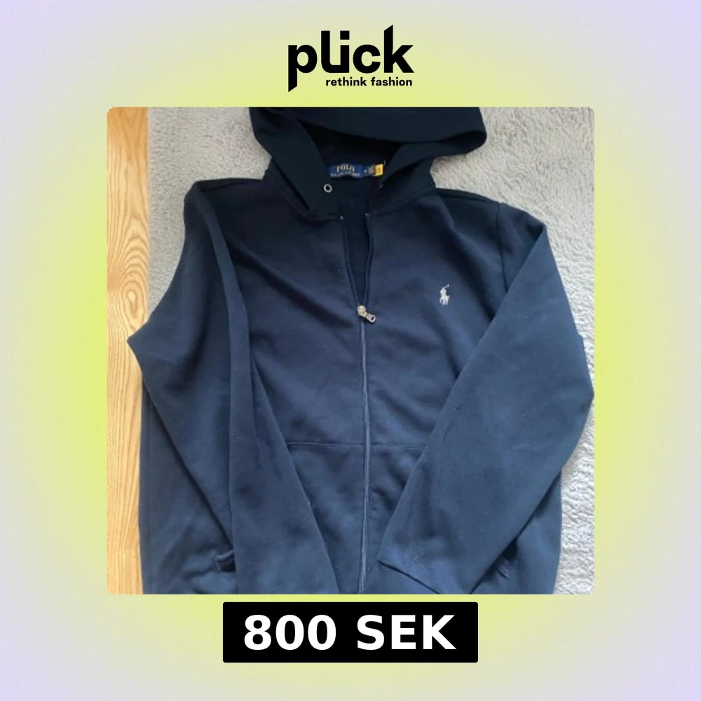 Säljer en svart hoodie från Polo Ralph Lauren med dragkedja och klassisk broderad logga på bröstet. Tröjan har huva och fickor framtill, perfekt för en avslappnad stil.