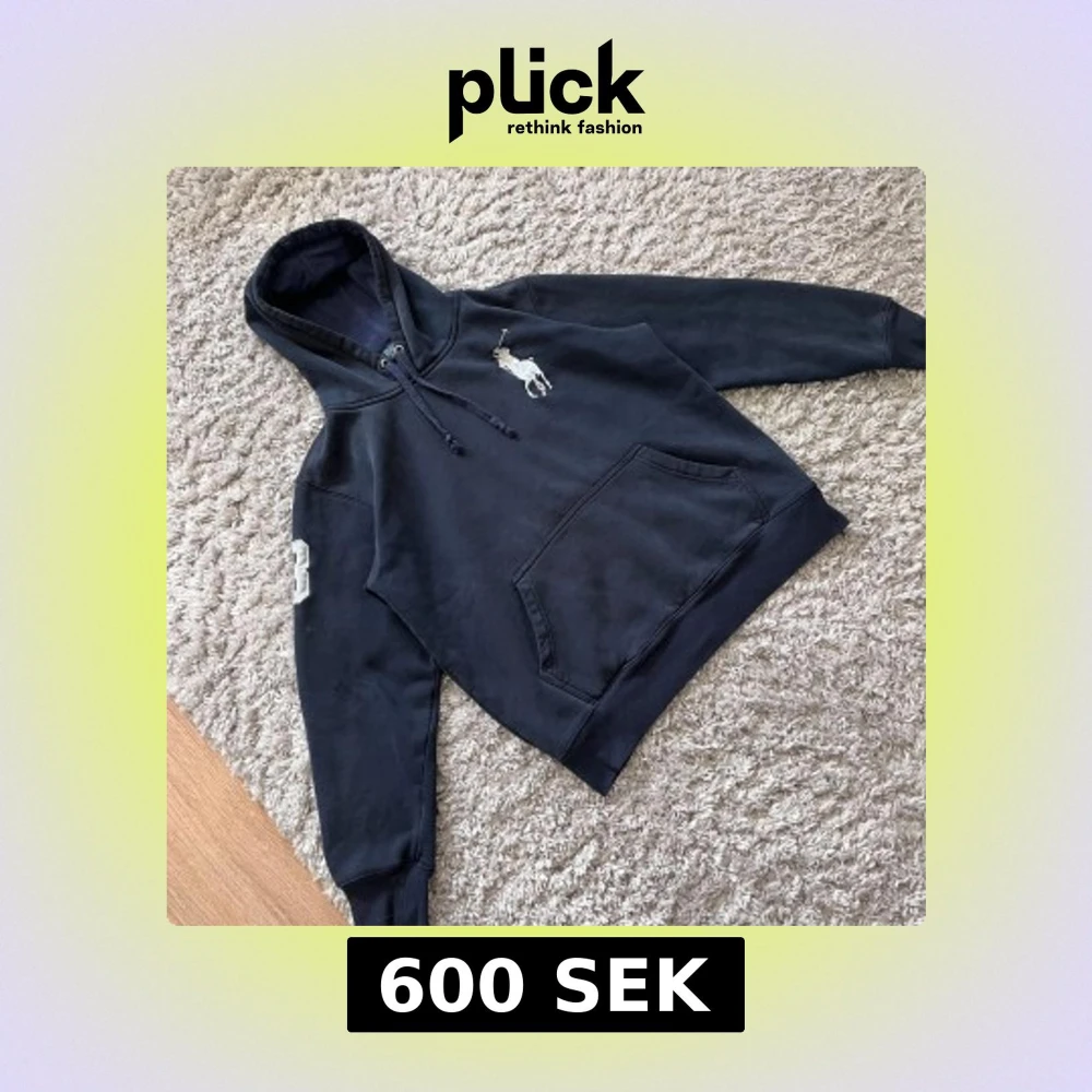 Säljer en mörkblå hoodie från Polo Ralph Lauren med stor vit logga på bröstet och broderad siffra på ärmen. Tröjan har huva med dragsko och en stor magficka framtill. Perfekt för en avslappnad stil. OBS finns 2 fläckar, skickar privat bilder. Mått: längd: 59cm armhåla till armhåla 53cm