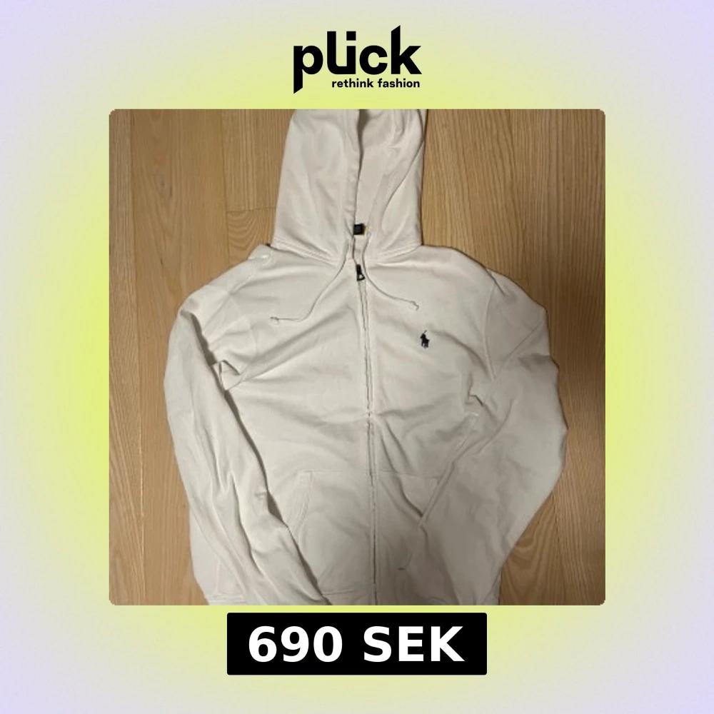 Vit hoodie från Polo Ralph Lauren med dragkedja och huva. Klassisk design med blå broderad logga på bröstet och känguruficka framtill. Tillverkad i mjuk bomull, perfekt för en chill och stilren look.