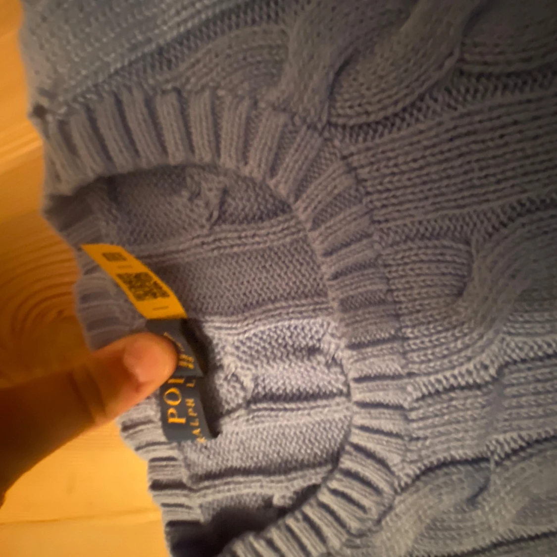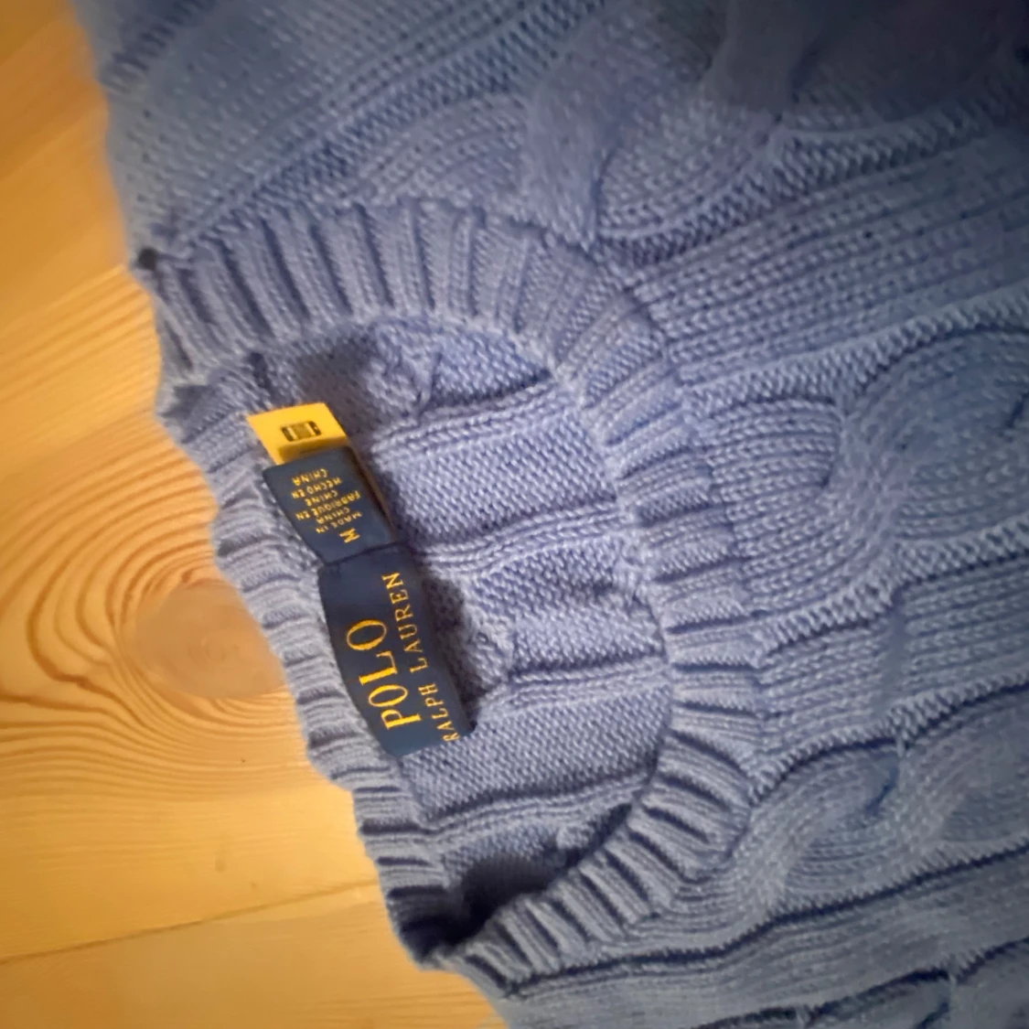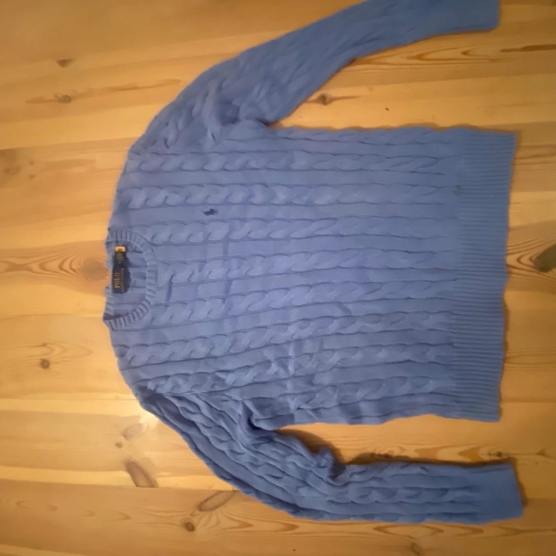 Snygg blå kabelstickad tröja från Polo Ralph Lauren i storlek M. Den är endast använd 1 gång då den är alldeles för liten för mig! Den är helt ny annars! Nypris 2600