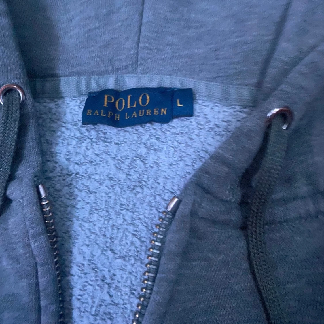 En grå Ralph lauren zip hoodie. Bra kvalitet knappt använt. Tröjan har broderad logga på bröstet, två fickor framtill och mjukt foder på insidan. Perfekt för chill dagar och enkel att matcha med jeans eller joggers. Storlek L men skulle passar bra om man har storlek M också.