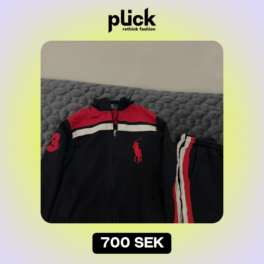 Säljer en snygg svart hoodie från Polo Ralph Lauren med röda och vita detaljer. Den har en dragkedja framtill och ett stort rött logotryck på bröstet. Perfekt för en sportig look eller chill dagar. Storlek är inte angiven, men den ser ut att vara i bra skick. Pris kan diskuteras.