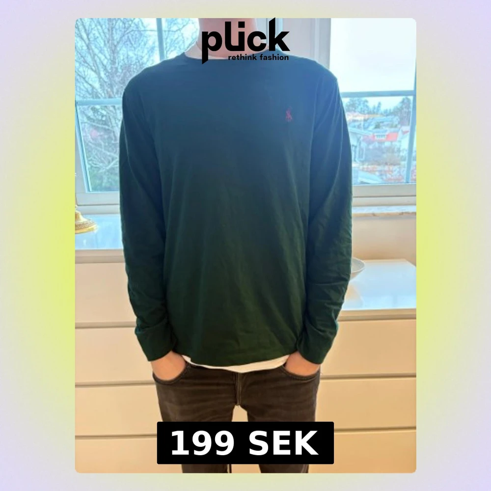 Säljer min mörkgröna långärmad tröja från Polo Ralph Lauren med klassisk röd logga broderad på bröstet. Tröjan har en rund hals och är i en slim fit-modell. Tillverkad i mjuk bomull som är skön mot huden, perfekt för dig som gillar stilrena och enkla plagg. Inte använd speciellt mycket.