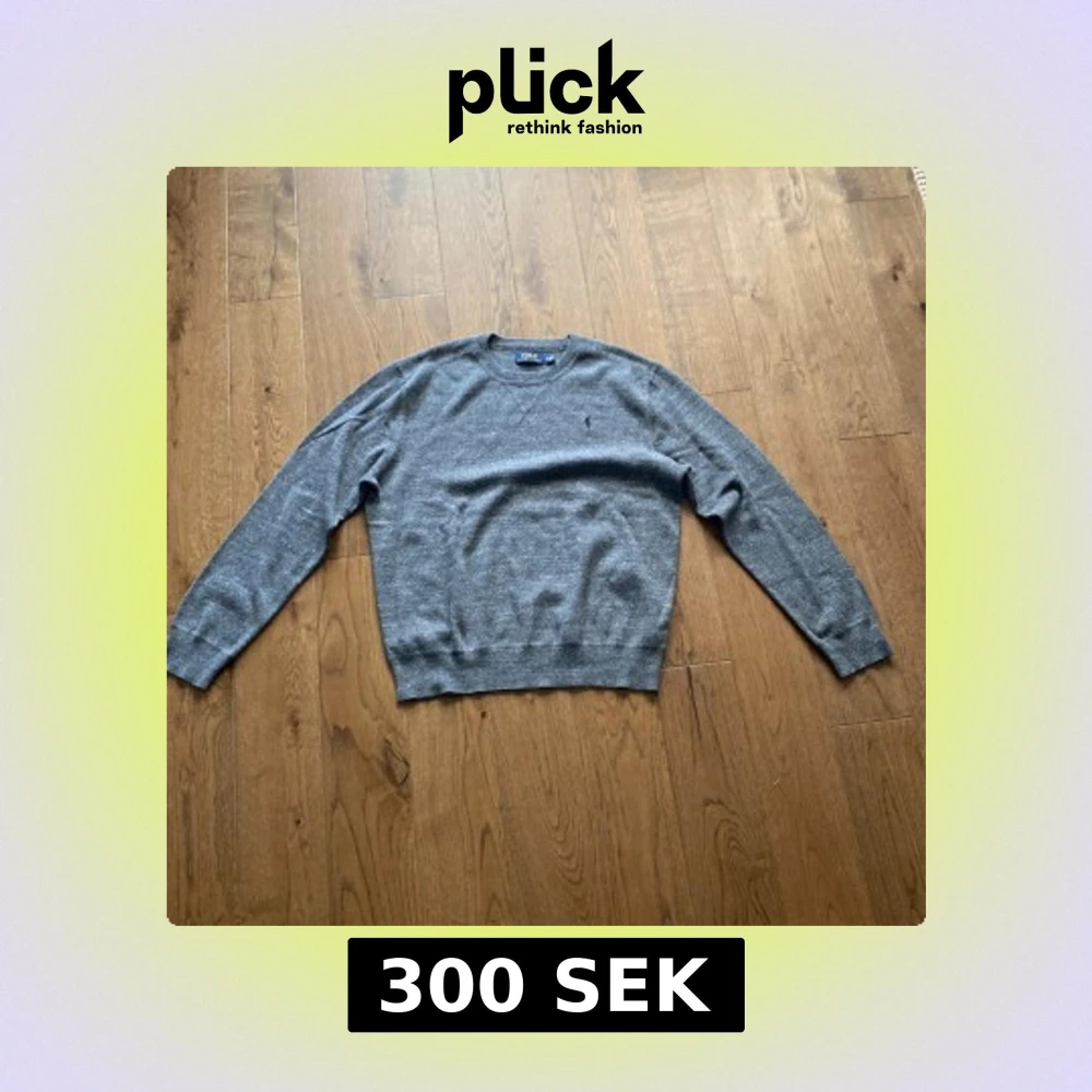 Säljer en grå stickad tröja från Polo Ralph Lauren i storlek M. Tröjan har rund hals, långärmade och ett diskret broderat Polo-logo på bröstet. Mjuk och skön kvalitet som passar perfekt till jeans eller chinos. Klassisk och stilren look.