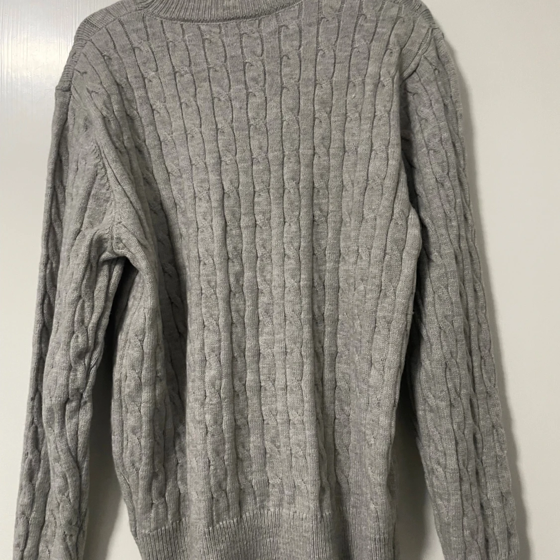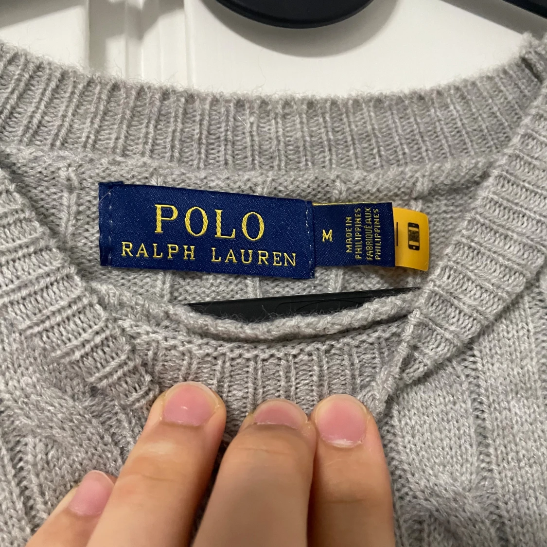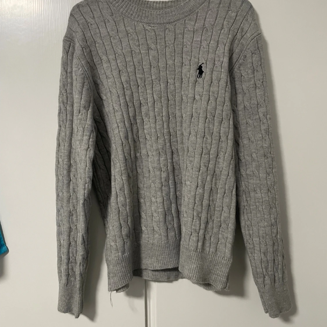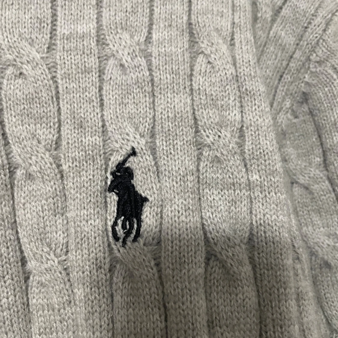 Nyskick kabelstickad grå tröja från Polo Ralph Lauren med klassisk rund halsringning och broderad logga på bröstet. Tröjan har långa ärmar och ribbade muddar för en snygg passform. Perfekt för lager-på-lager under kyliga dagar.