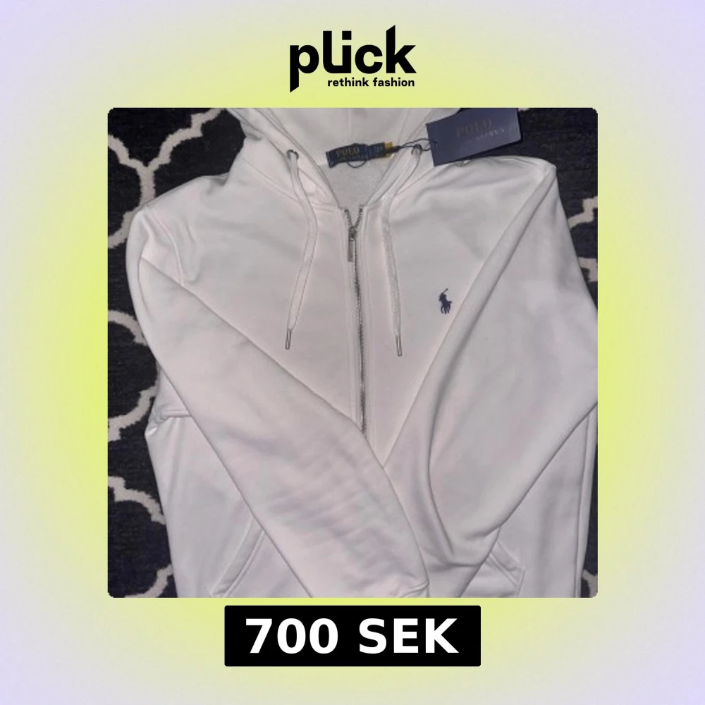 Vit hoodie från Polo Ralph Lauren med dragkedja och huva. Tröjan har ett broderat blått Polo-logo på bröstet, snörning vid huvan och mjukt fleecefoder på insidan. Perfekt för chill dagar och snygg streetstyle.