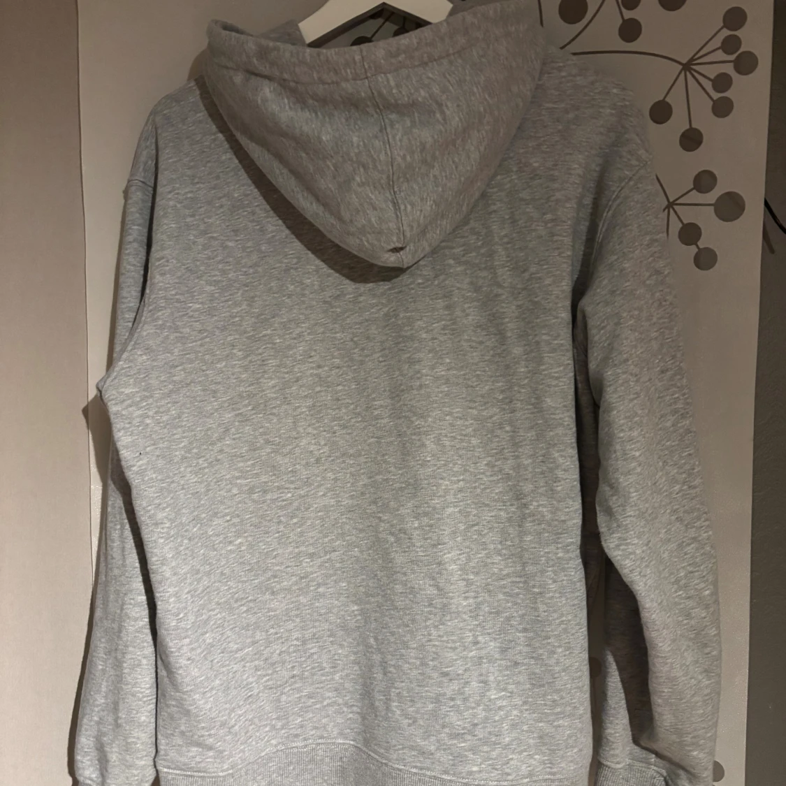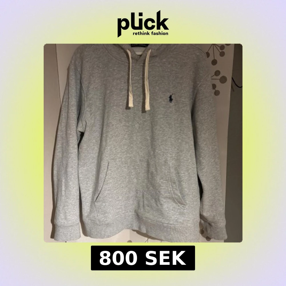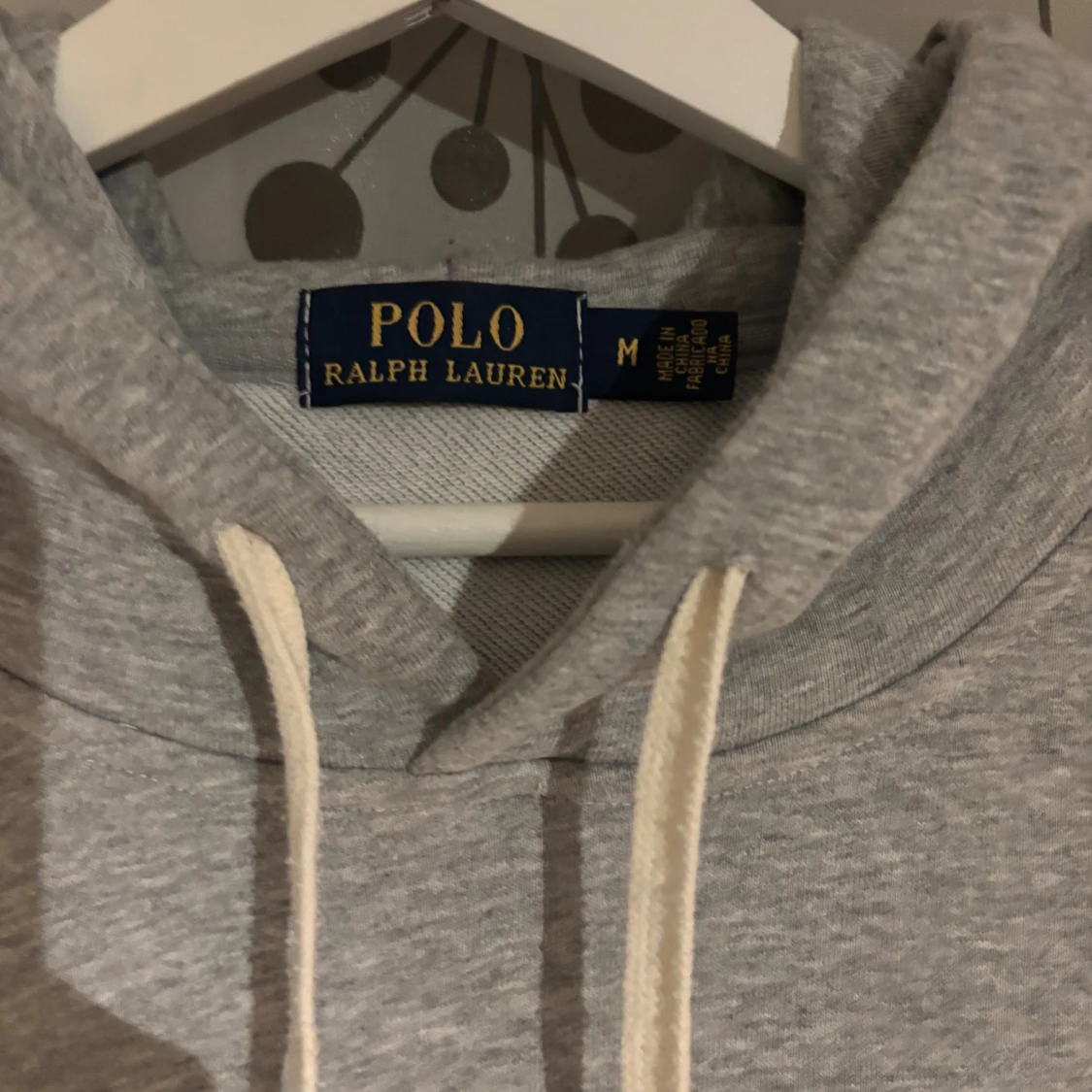 Säljer en grå hoodie från Polo Ralph Lauren i storlek M. Tröjan har huva med vita snören, känguruficka och det klassiska blå Polo-logot på bröstet. Mjuk bomullskvalitet och ribbade muddar vid ärmslut och nederkant. Perfekt för chill dagar.