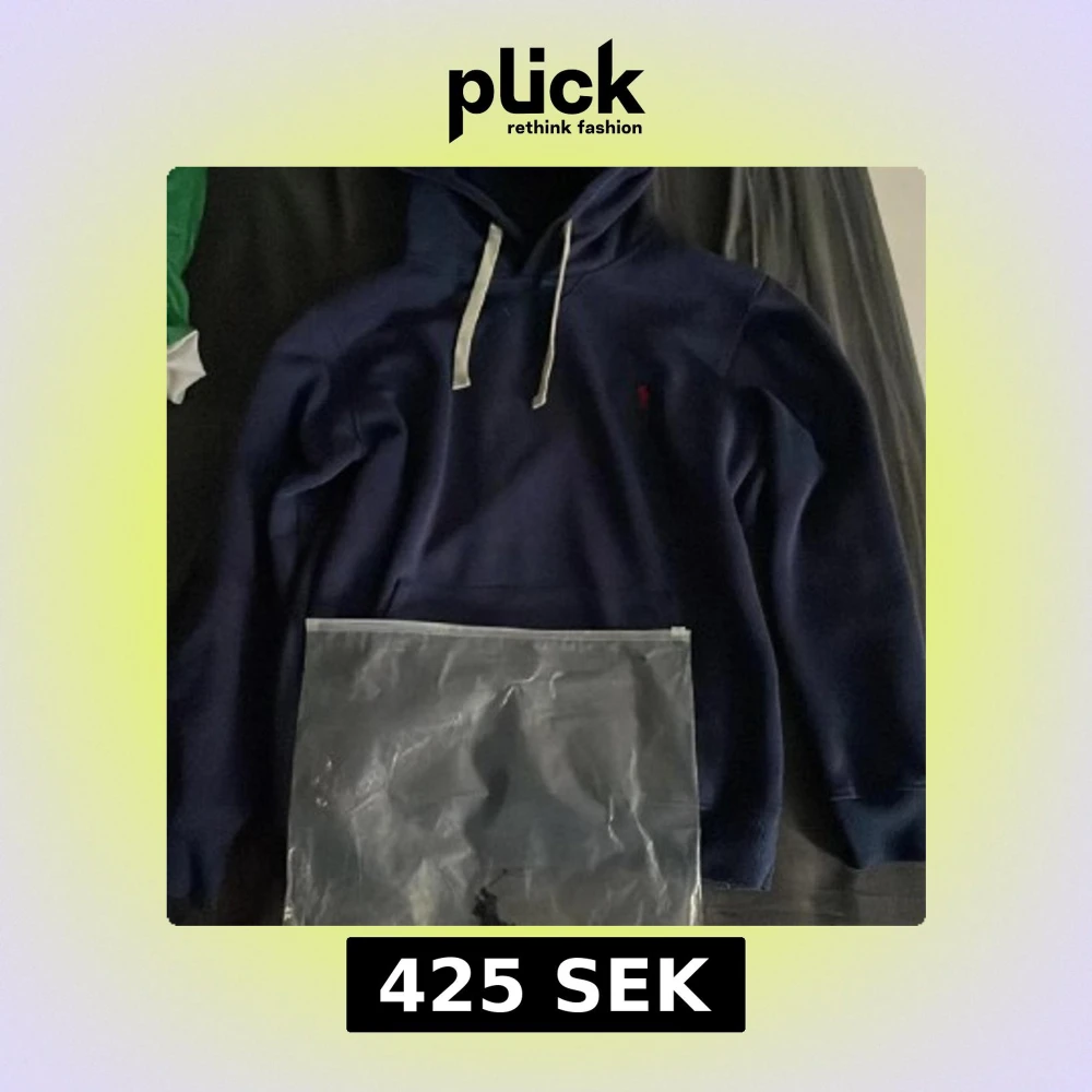 Säljer en marinblå hoodie från Ralph Lauren med klassisk huva och vita snören. Tröjan har en liten röd broderad logga på bröstet och en stor ficka framtill. Perfekt för dig som gillar stilren och sportig look.