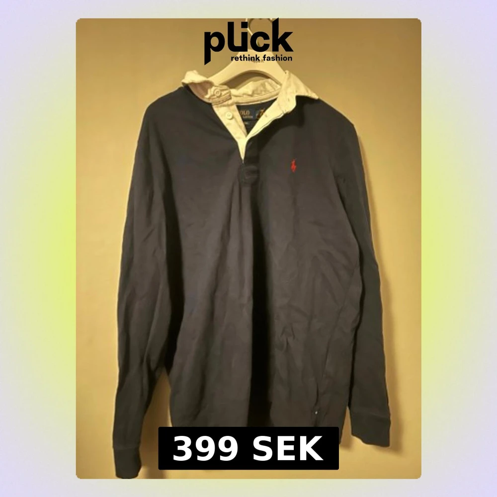 Mörkblå långärmad tröja från Ralph Lauren med vit krage och röd broderad logo. Storlek: M Skick: mycket bra Klassisk och stilren modell som funkar både till vardag och mer uppklätt. Kan skickas eller hämtas i Göteborg