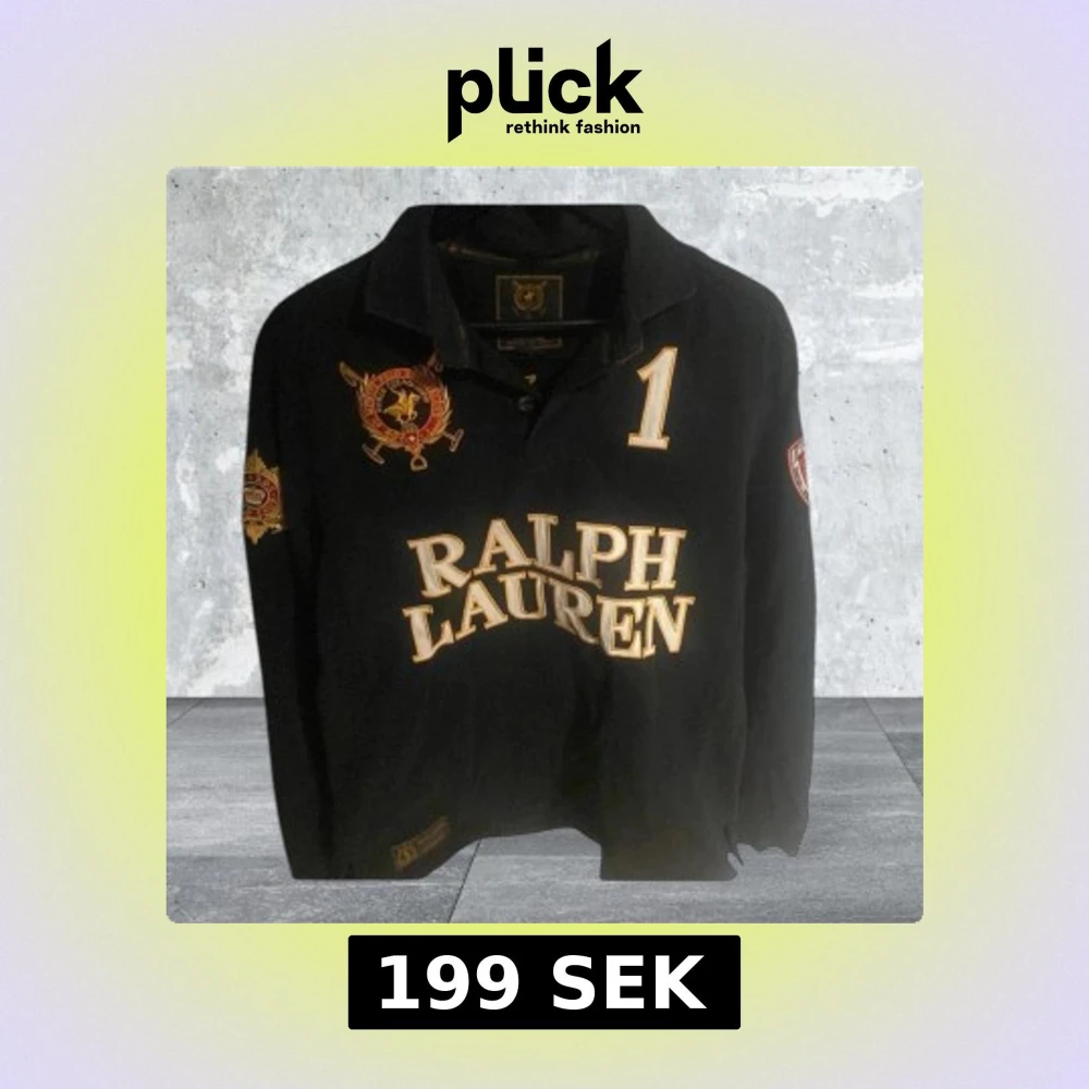 Snygg svart pikétröja från Ralph Lauren med broderade detaljer och nummer 1 på både fram- och baksida. Tröjan har långa ärmar och en klassisk krage. Perfekt för en stilren look.