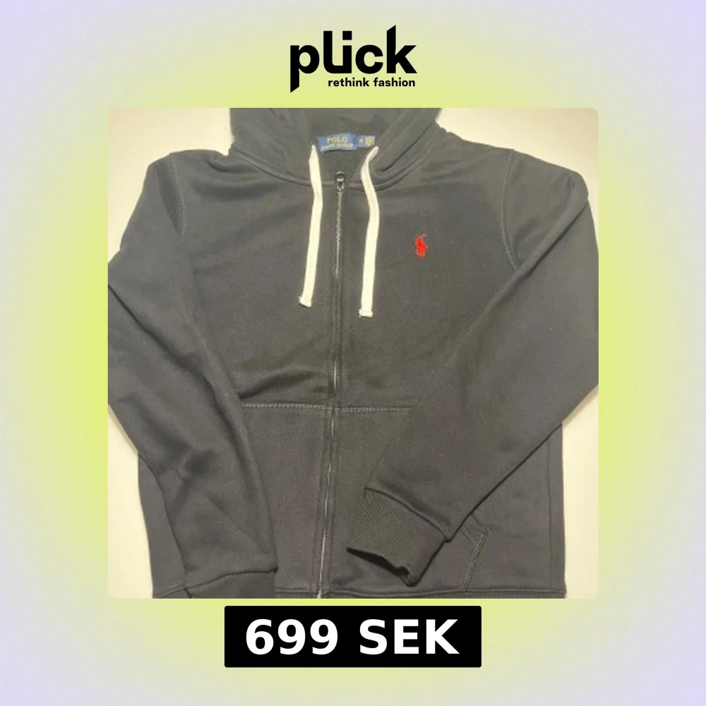 Svart hoodie från Polo Ralph Lauren med vit snörning och dragkedja framtill. Klassisk röd broderad logga på bröstet och mjukt bomullsmaterial. Perfekt för chill dagar och snygg streetstyle. Ficka framtill och ribbade muddar för extra komfort.