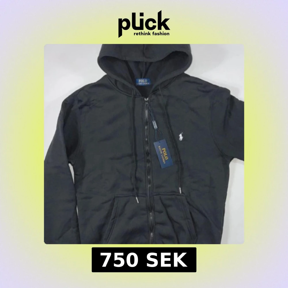 Svart hoodie från Polo Ralph Lauren med klassisk vit logga på bröstet. Tröjan har huva med snörning, dragkedja framtill och en stor ficka på magen. Perfekt för dig som gillar stilrena och bekväma plagg med premiumkänsla.
